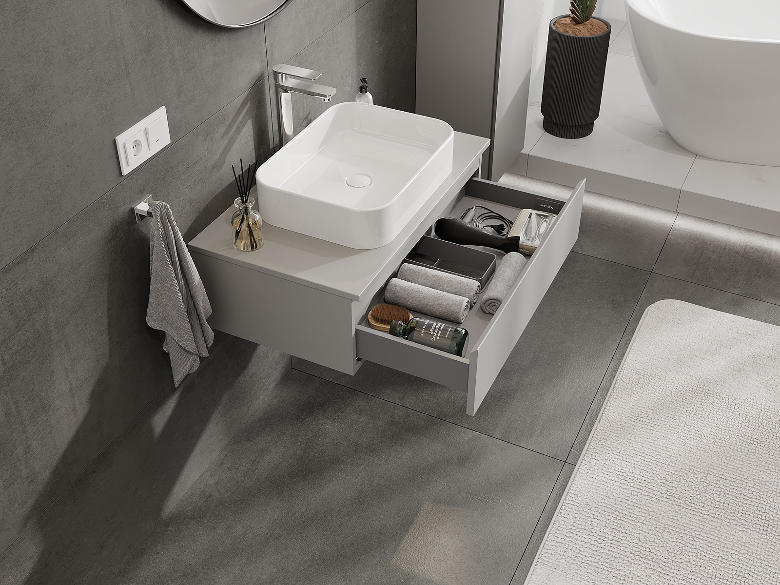 Mexen Orio koupelnová skříňka pod umyvadlo 80 cm, 1 zásuvka, šedá mat - 91A10-08023-1-BF62
