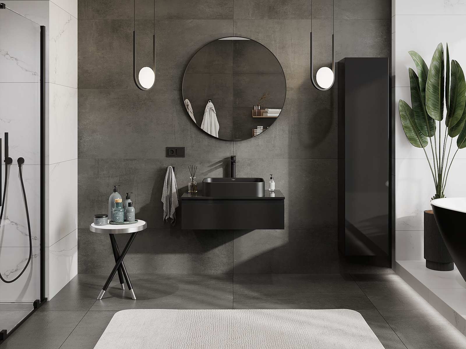 Mexen Orio koupelnová skříňka pod umyvadlo 80 cm, 1 zásuvka, černý lesk - 91A10-08023-1-BF70