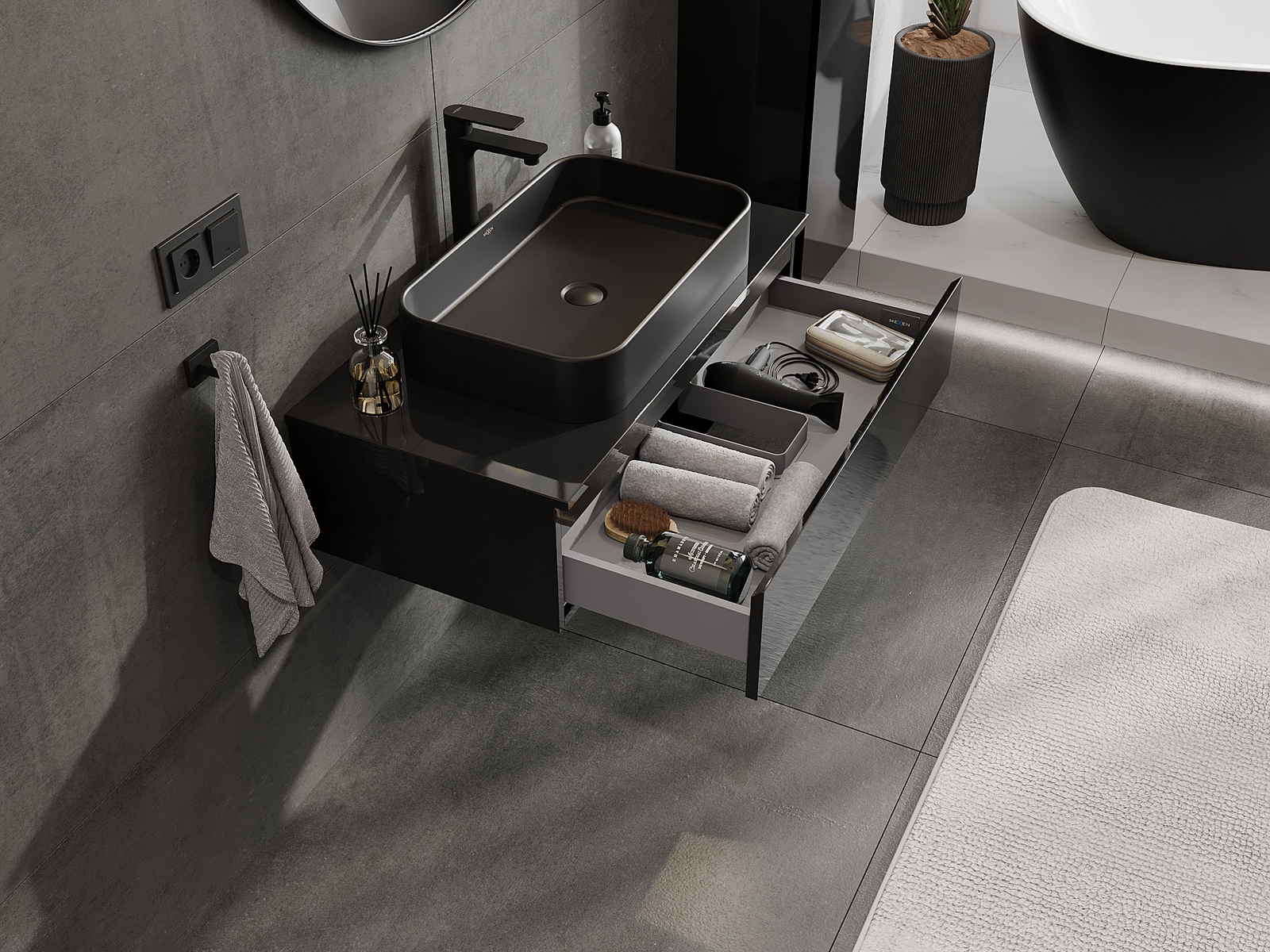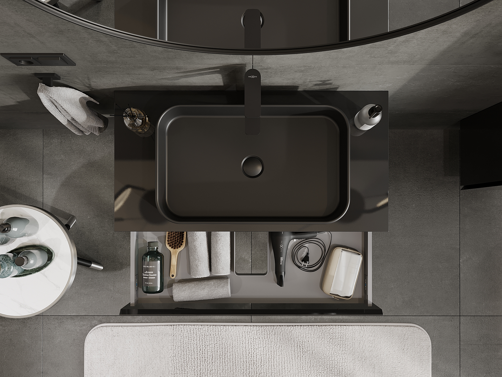 Mexen Orio koupelnová skříňka pod umyvadlo 90 cm, 1 zásuvka, černý lesk - 91A10-09023-1-BF70