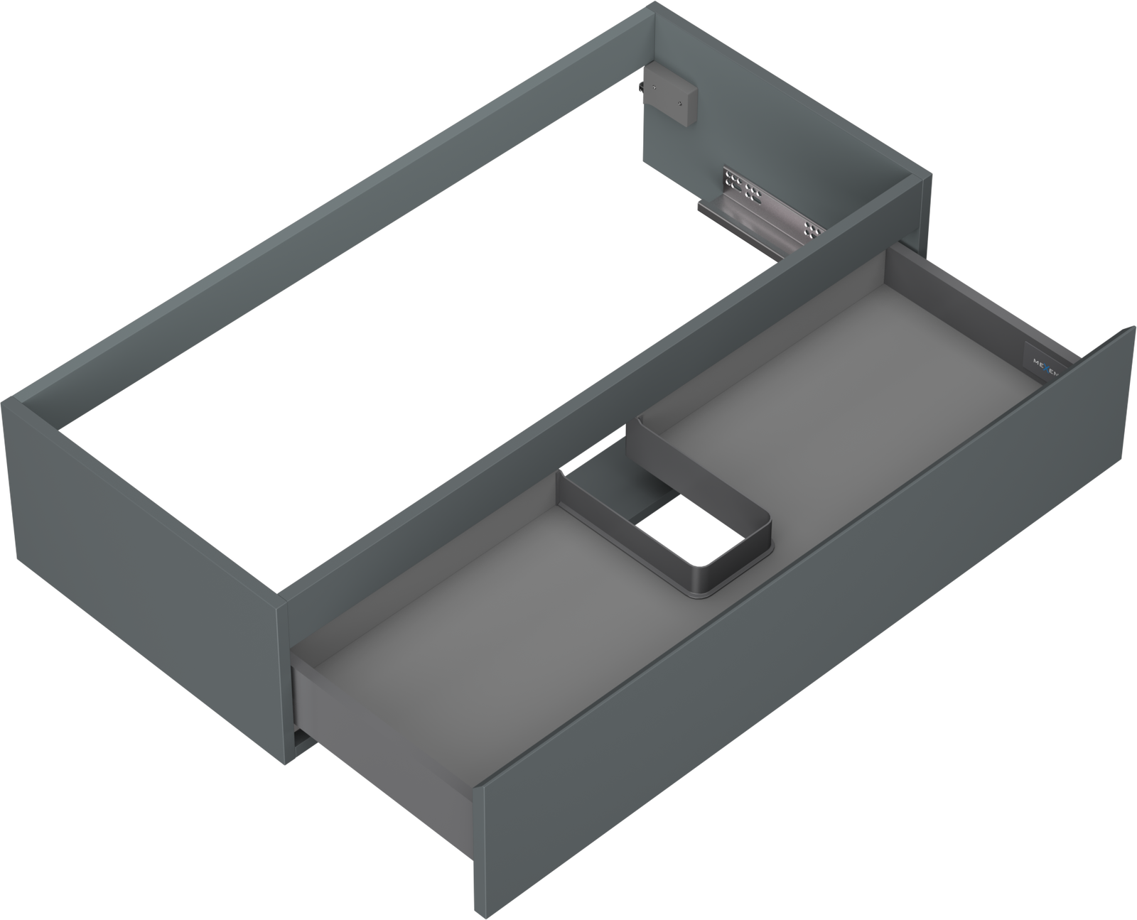 Výřez v zásuvce je navržen tak, aby pojmul sifon, který je nezbytný v instalacích umyvadlových. Díky tomu může být nábytek plně funkčně namontován, aniž by bylo nutné vzdát se prostoru v zásuvce ve prospěch instalace.