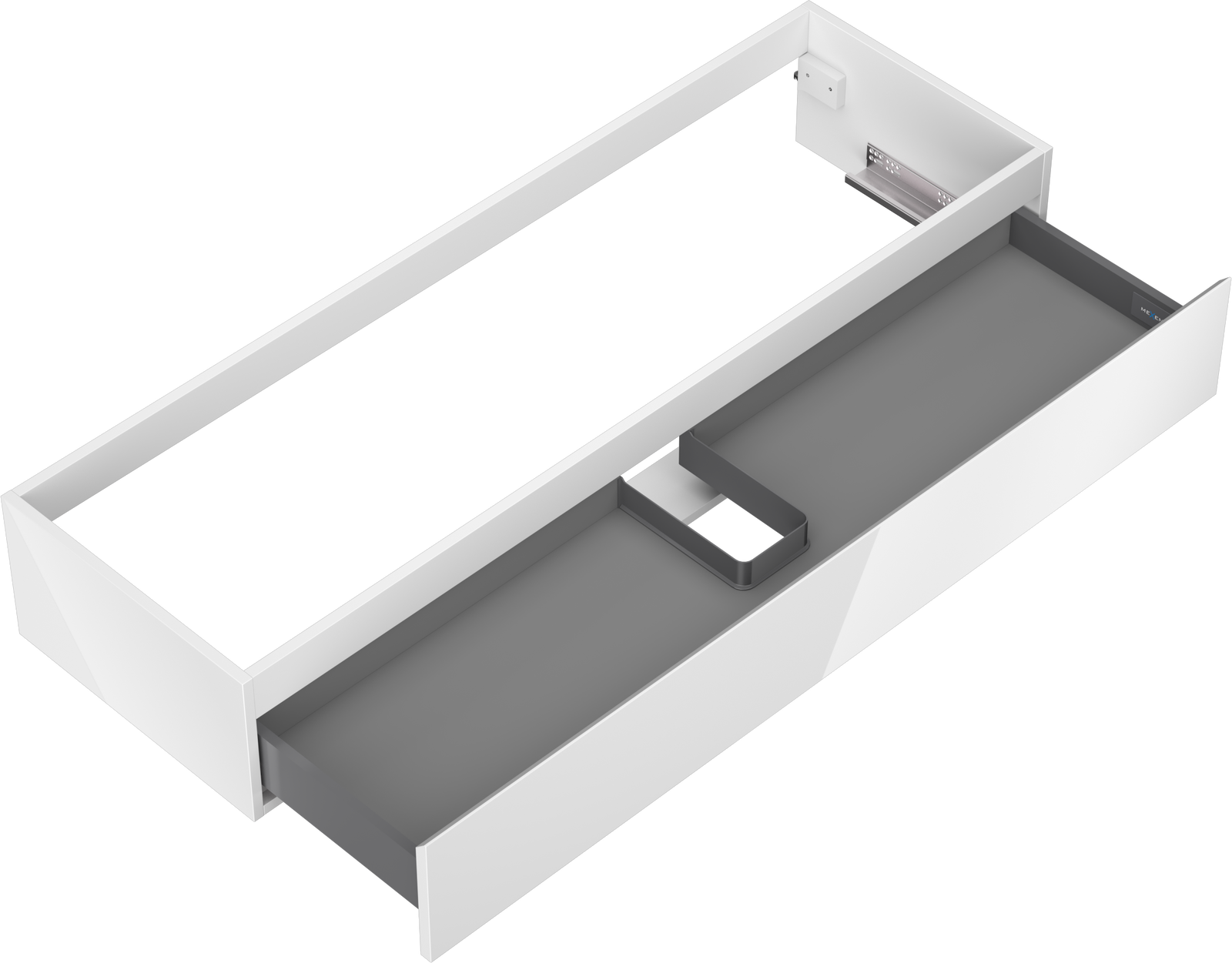 Výřez v zásuvce je navržen tak, aby pojmul sifon, který je nezbytný v instalacích umyvadlových. Díky tomu může být nábytek plně funkčně namontován, aniž by bylo nutné vzdát se prostoru v zásuvce ve prospěch instalace.
