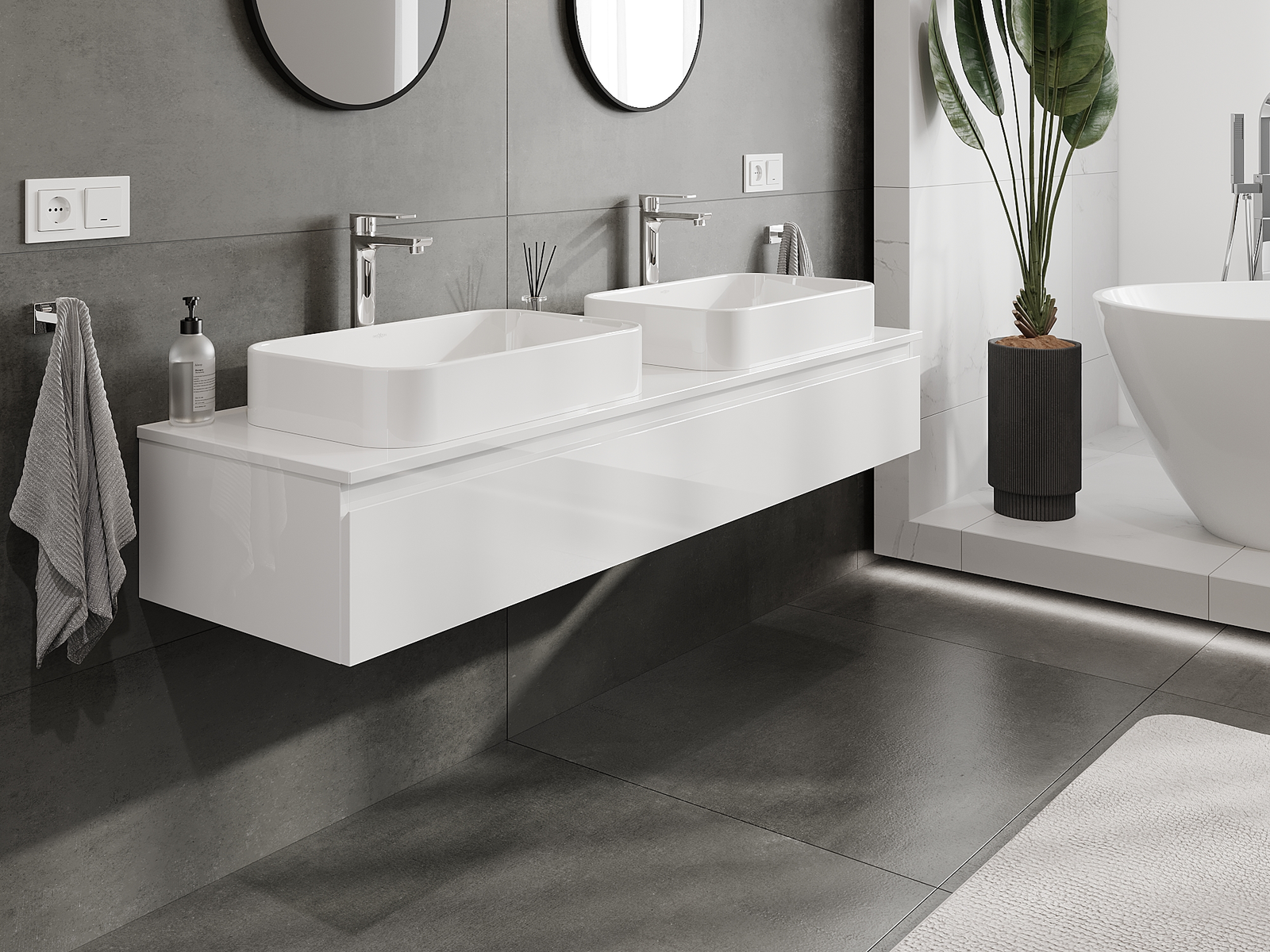 Naše modulární koupelnový nábytek lze kombinovat v různých barevných konfiguracích, což umožňuje plnou personalizaci. Můžete si vybrat jak vzhled, tak funkce jednotlivých prvků, což umožňuje přizpůsobit nábytek vašim stylovým a uživatelským preferencím.