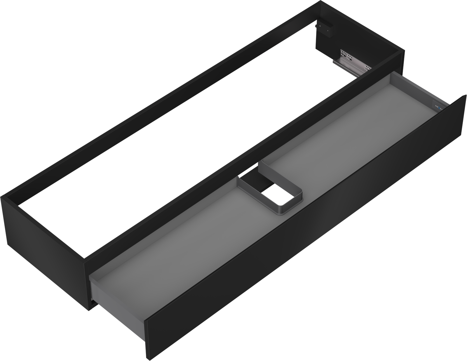 Výřez v zásuvce je navržen tak, aby pojmul sifon, který je nezbytný v instalacích umyvadlových. Díky tomu může být nábytek plně funkčně namontován, aniž by bylo nutné vzdát se prostoru v zásuvce ve prospěch instalace.