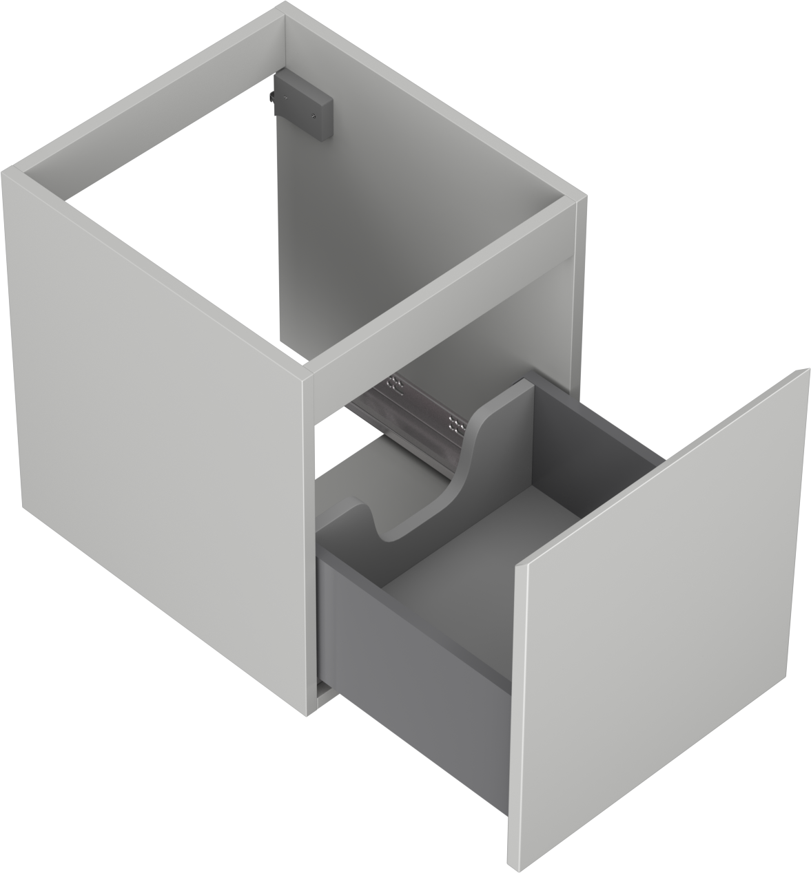 Výřez v zásuvce je navržen tak, aby pojmul sifon, který je nezbytný v instalacích umyvadlových. Díky tomu může být nábytek plně funkčně namontován, aniž by bylo nutné vzdát se prostoru v zásuvce ve prospěch instalace.