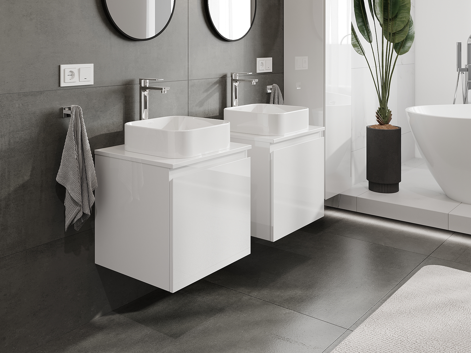 Naše modulární koupelnový nábytek lze kombinovat v různých barevných konfiguracích, což umožňuje plnou personalizaci. Můžete si vybrat jak vzhled, tak funkce jednotlivých prvků, což umožňuje přizpůsobit nábytek vašim stylovým a uživatelským preferencím.