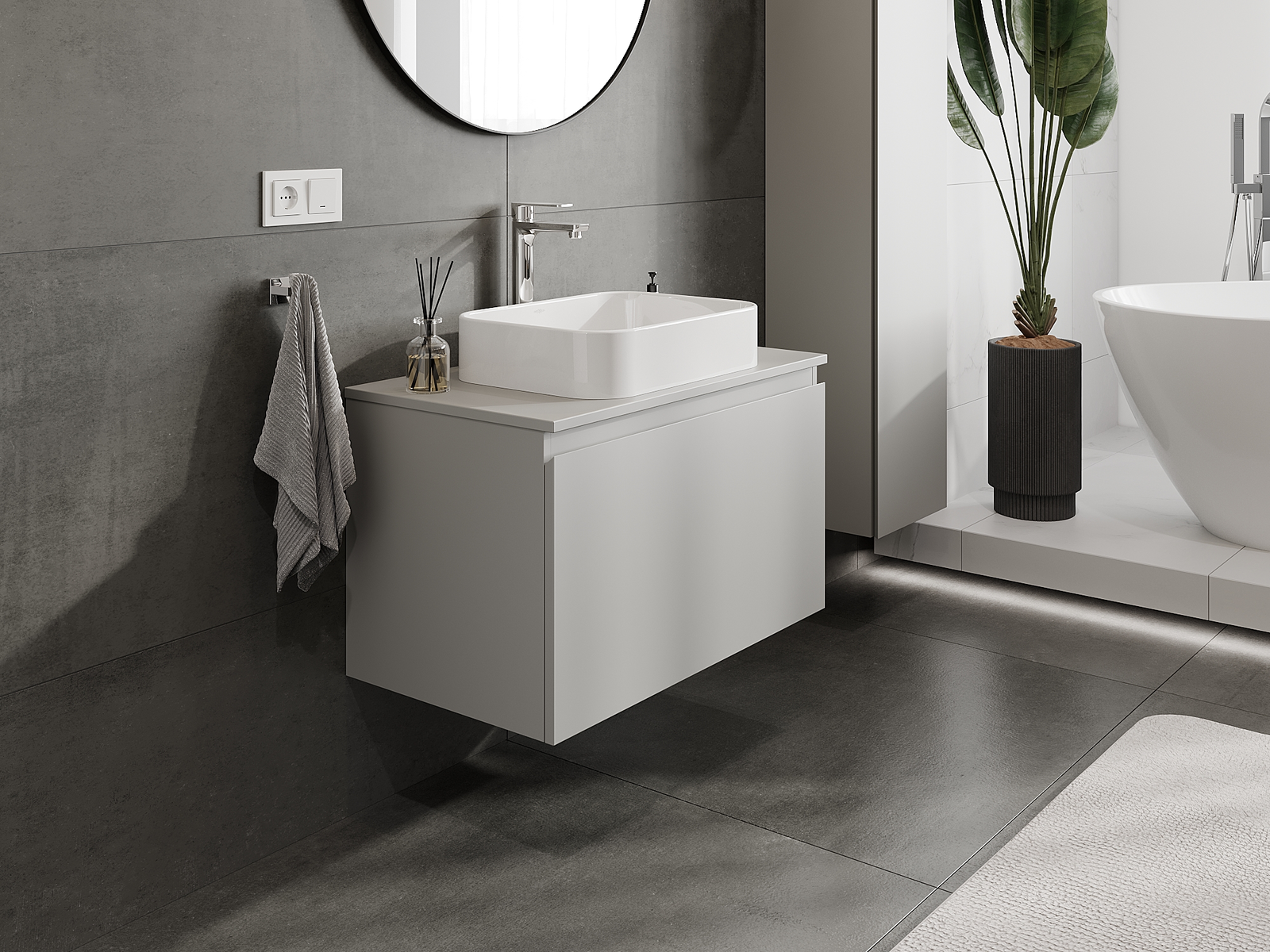 Naše modulární koupelnový nábytek lze kombinovat v různých barevných konfiguracích, což umožňuje plnou personalizaci. Můžete si vybrat jak vzhled, tak funkce jednotlivých prvků, což umožňuje přizpůsobit nábytek vašim stylovým a uživatelským preferencím.