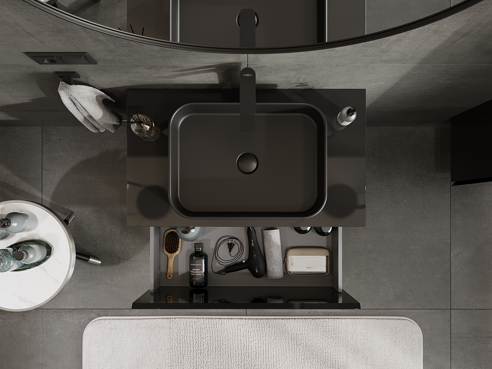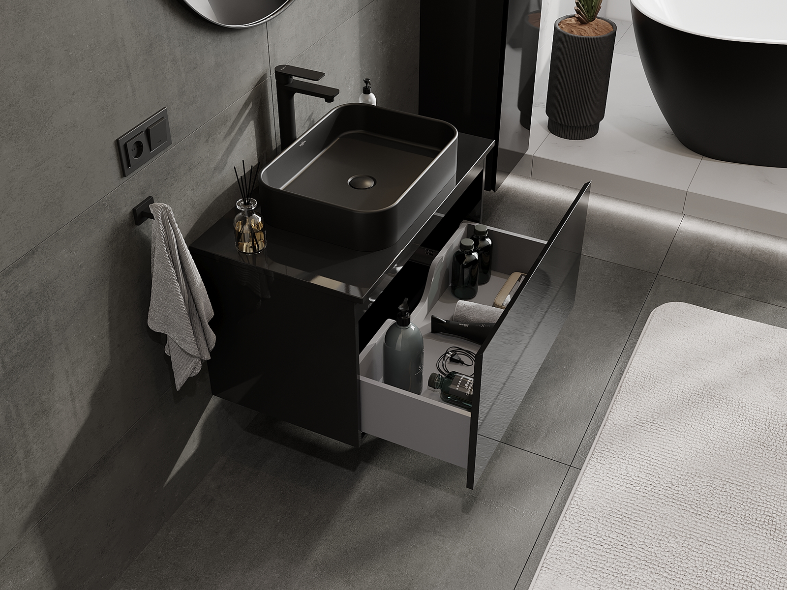 Mexen Orio koupelnová skříňka pod umyvadlo 80 cm, 1 zásuvka, černý lesk - 91A10-08047-1-BF70