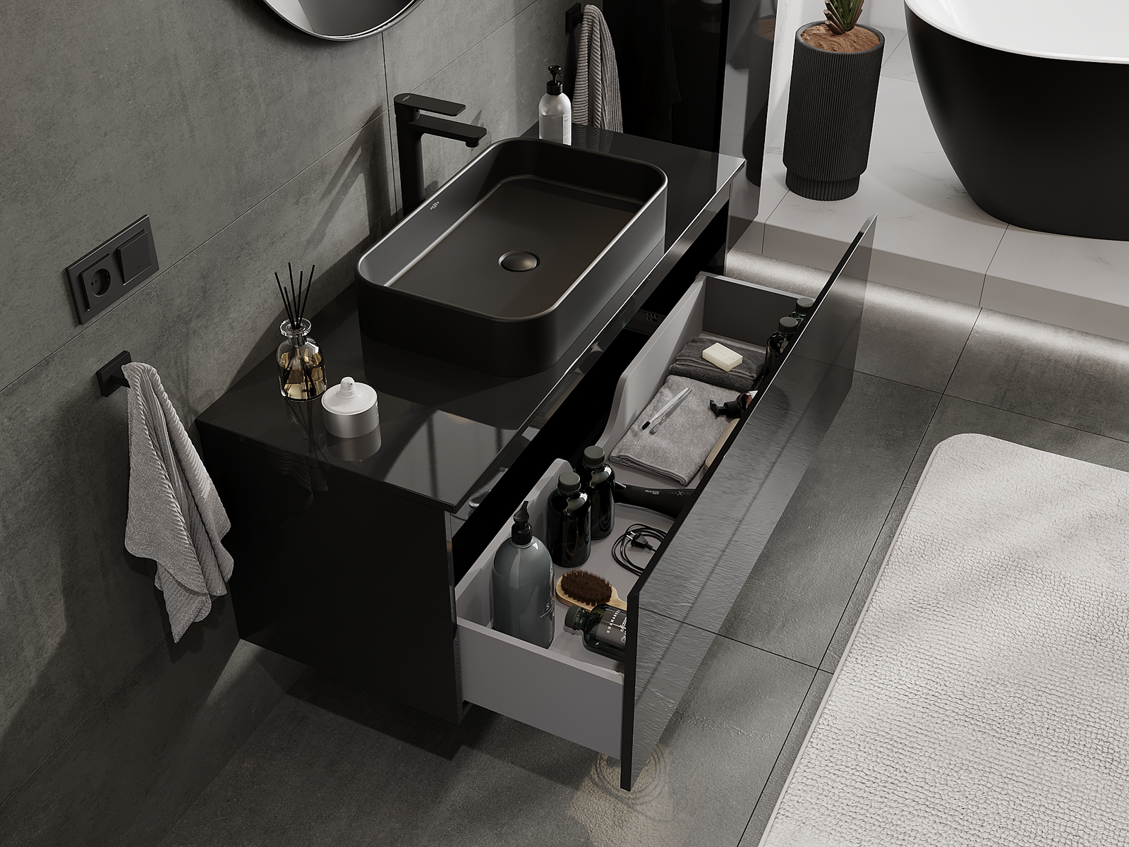 Mexen Orio koupelnová skříňka pod umyvadlo 120 cm, 1 zásuvka, černý lesk - 91A10-12047-1-BF70