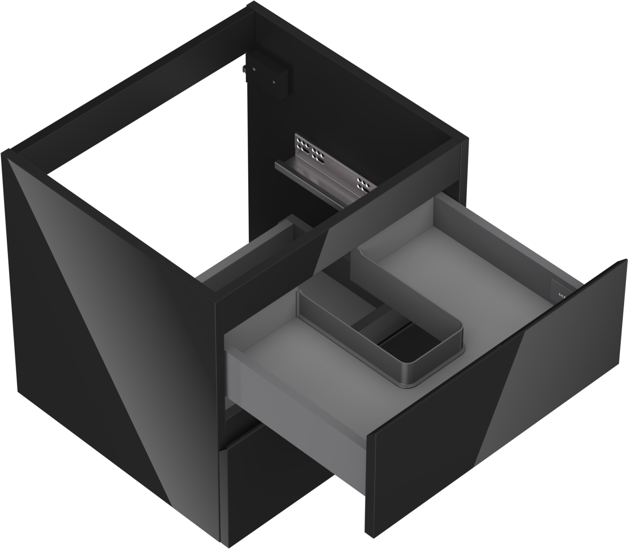 Výřez v zásuvce je navržen tak, aby pojmul sifon, který je nezbytný v instalacích umyvadlových. Díky tomu může být nábytek plně funkčně namontován, aniž by bylo nutné vzdát se prostoru v zásuvce ve prospěch instalace.