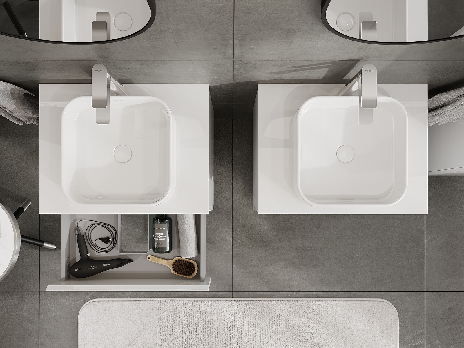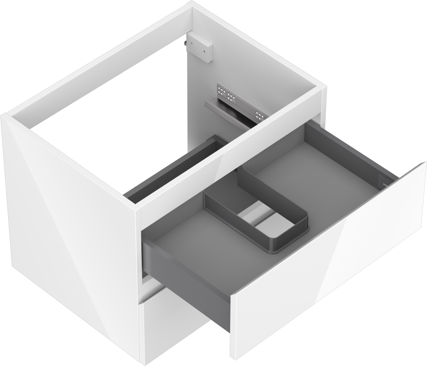 Výřez v zásuvce je navržen tak, aby pojmul sifon, který je nezbytný v instalacích umyvadlových. Díky tomu může být nábytek plně funkčně namontován, aniž by bylo nutné vzdát se prostoru v zásuvce ve prospěch instalace.