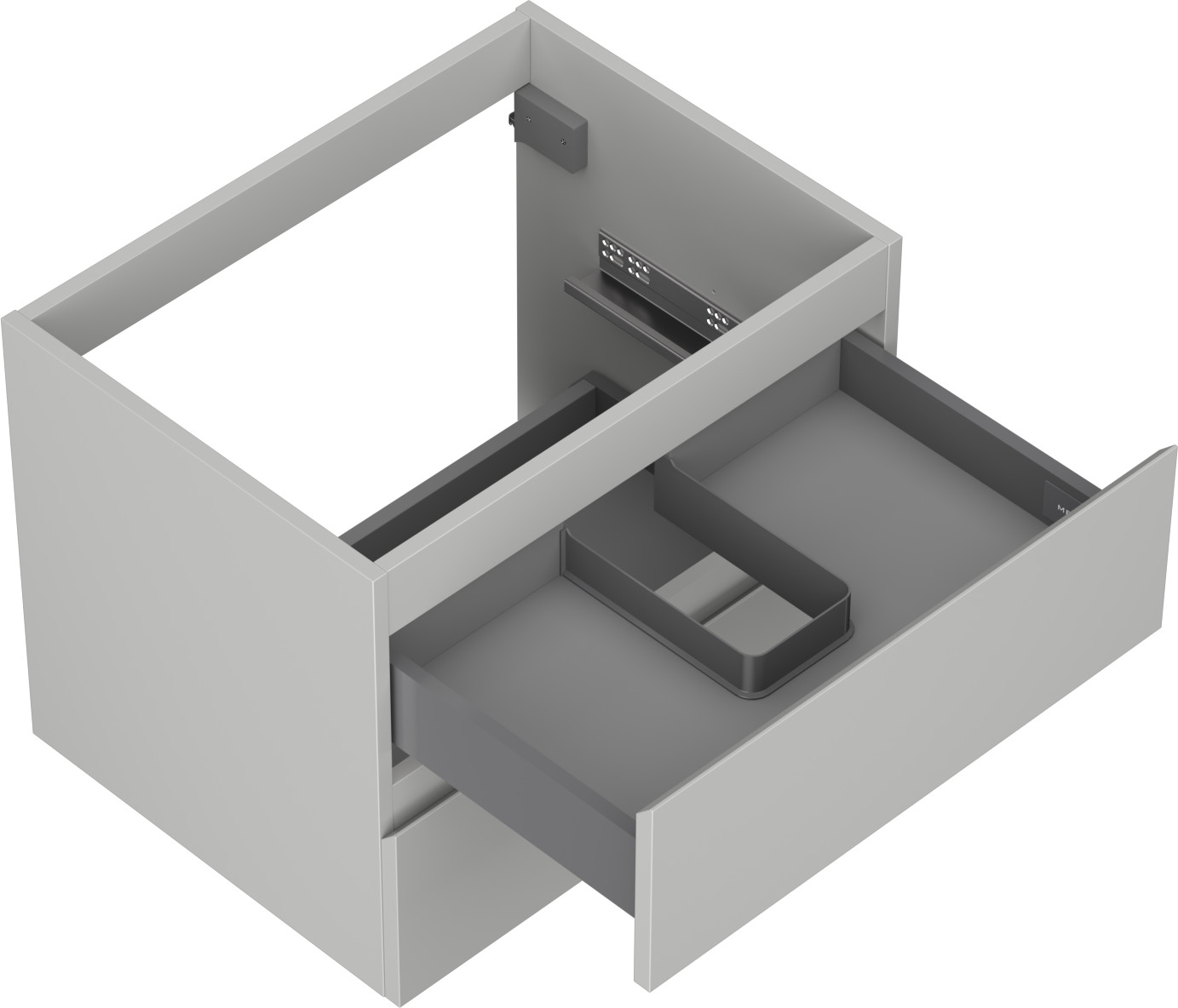 Výřez v zásuvce je navržen tak, aby pojmul sifon, který je nezbytný v instalacích umyvadlových. Díky tomu může být nábytek plně funkčně namontován, aniž by bylo nutné vzdát se prostoru v zásuvce ve prospěch instalace.