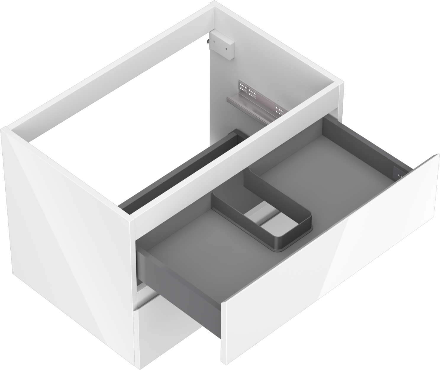 Výřez v zásuvce je navržen tak, aby pojmul sifon, který je nezbytný v instalacích umyvadlových. Díky tomu může být nábytek plně funkčně namontován, aniž by bylo nutné vzdát se prostoru v zásuvce ve prospěch instalace.