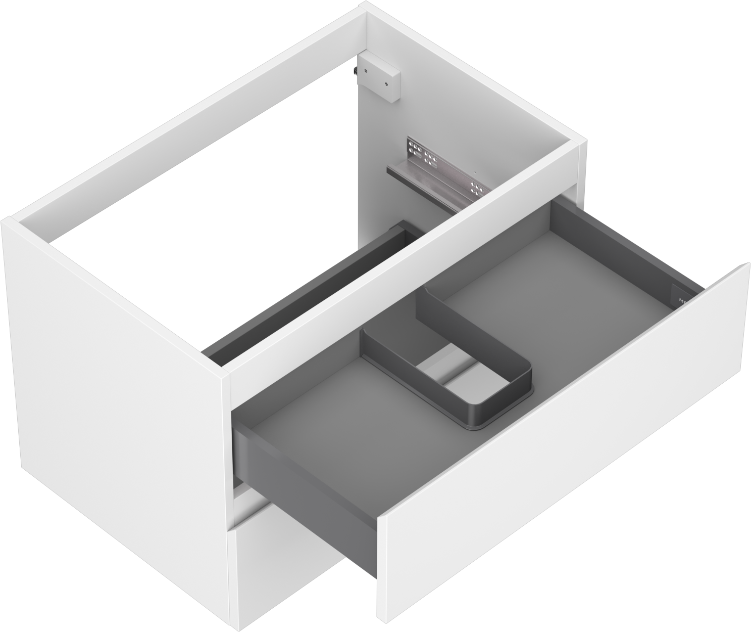 Výřez v zásuvce je navržen tak, aby pojmul sifon, který je nezbytný v instalacích umyvadlových. Díky tomu může být nábytek plně funkčně namontován, aniž by bylo nutné vzdát se prostoru v zásuvce ve prospěch instalace.