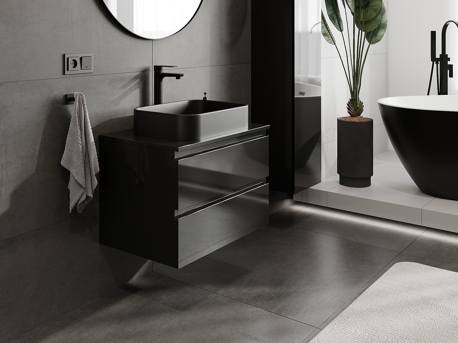 Naše modulární koupelnový nábytek lze kombinovat v různých barevných konfiguracích, což umožňuje plnou personalizaci. Můžete si vybrat jak vzhled, tak funkce jednotlivých prvků, což umožňuje přizpůsobit nábytek vašim stylovým a uživatelským preferencím.