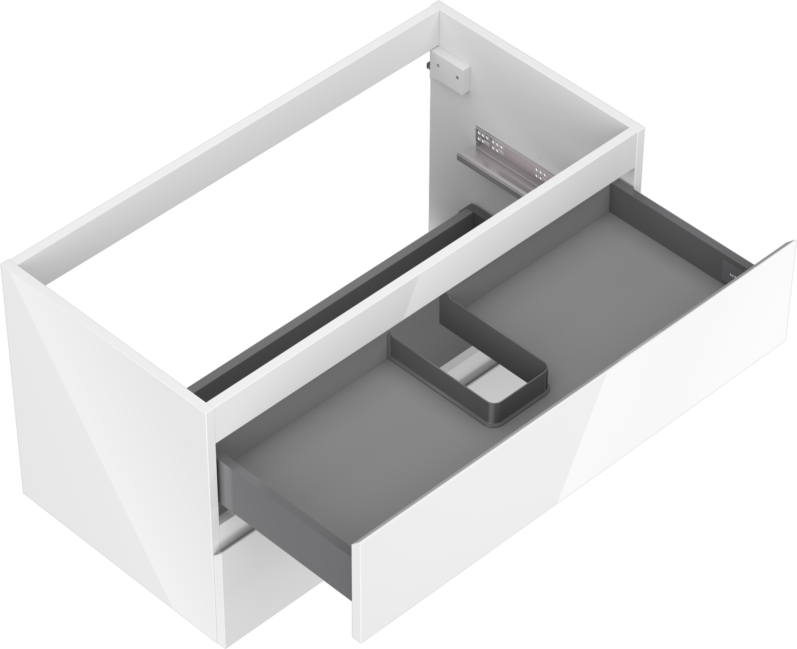 Výřez v zásuvce je navržen tak, aby pojmul sifon, který je nezbytný v instalacích umyvadlových. Díky tomu může být nábytek plně funkčně namontován, aniž by bylo nutné vzdát se prostoru v zásuvce ve prospěch instalace.
