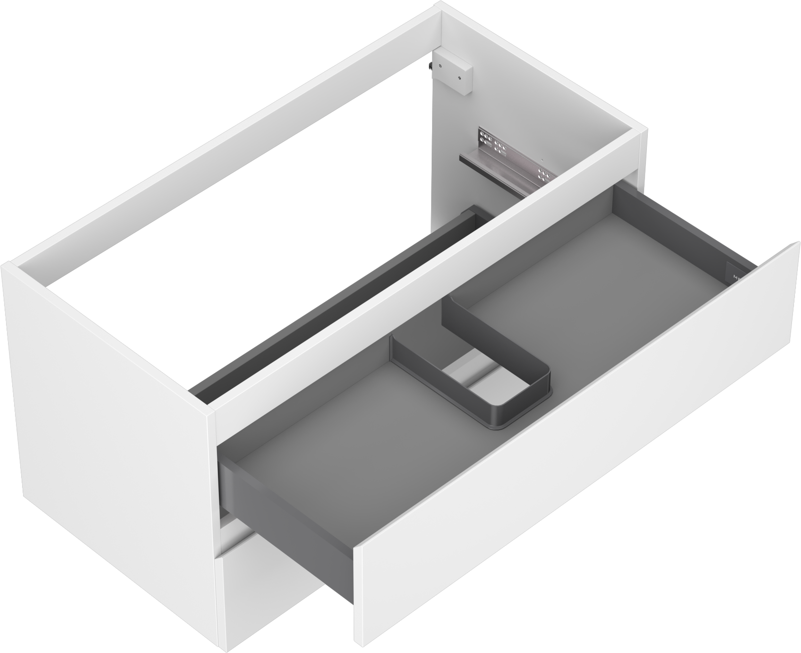 Výřez v zásuvce je navržen tak, aby pojmul sifon, který je nezbytný v instalacích umyvadlových. Díky tomu může být nábytek plně funkčně namontován, aniž by bylo nutné vzdát se prostoru v zásuvce ve prospěch instalace.