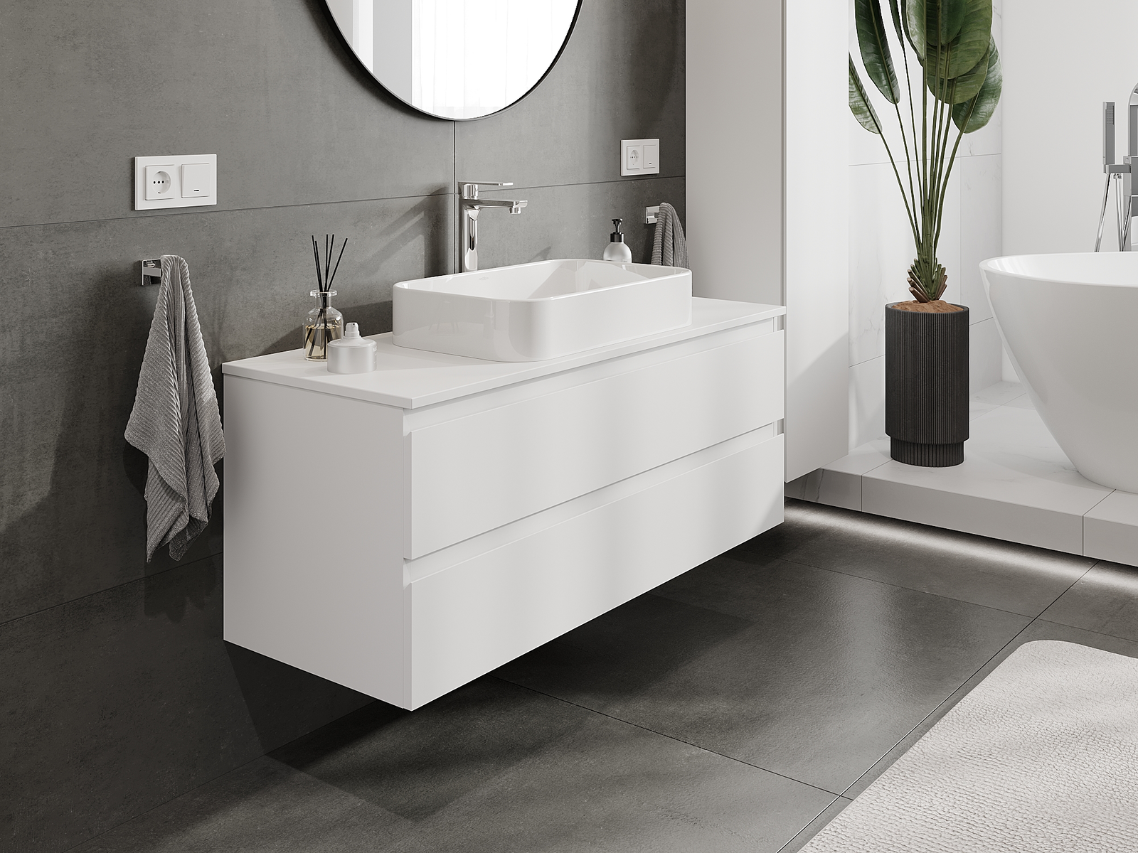 Naše modulární koupelnový nábytek lze kombinovat v různých barevných konfiguracích, což umožňuje plnou personalizaci. Můžete si vybrat jak vzhled, tak funkce jednotlivých prvků, což umožňuje přizpůsobit nábytek vašim stylovým a uživatelským preferencím.