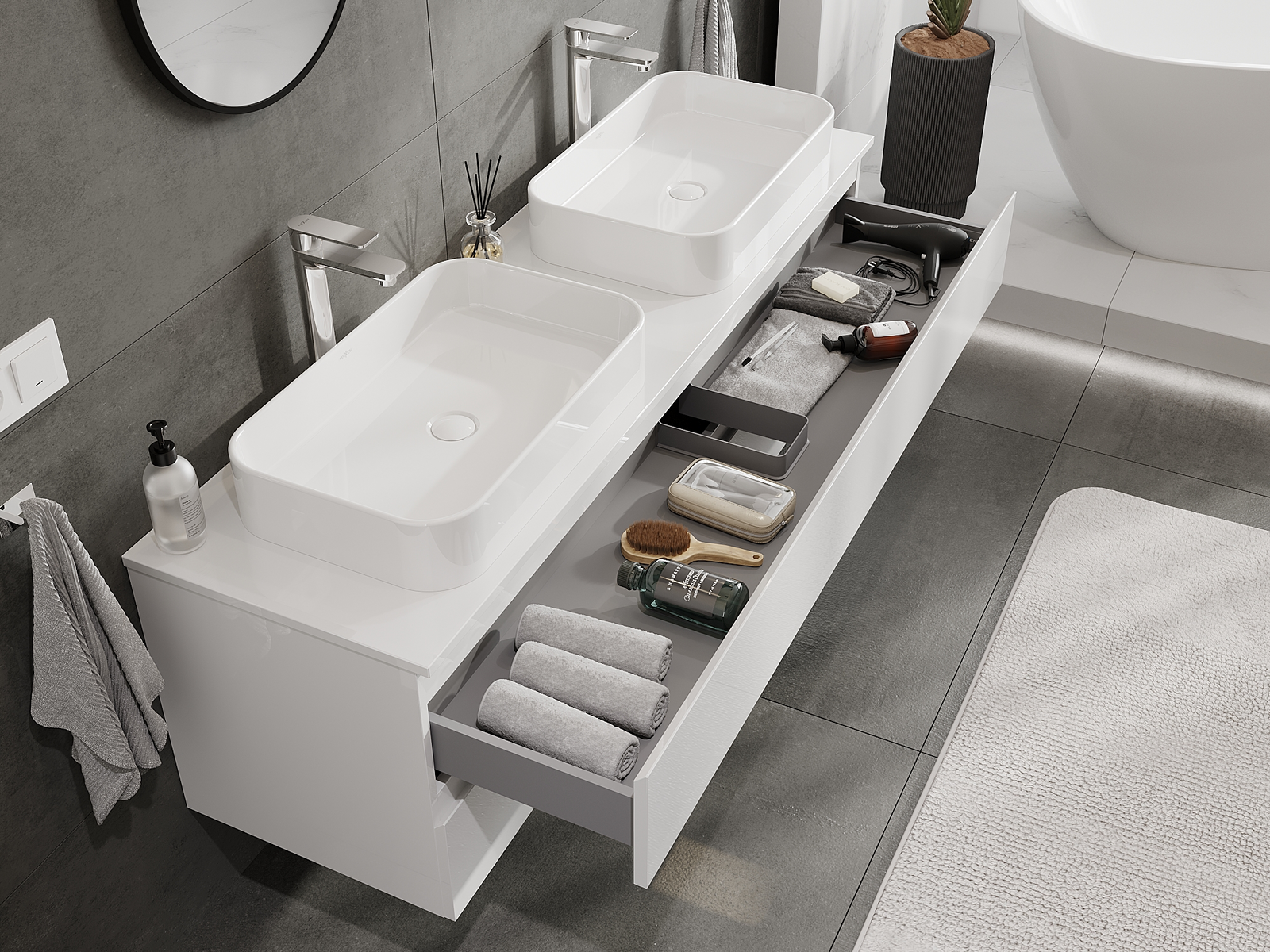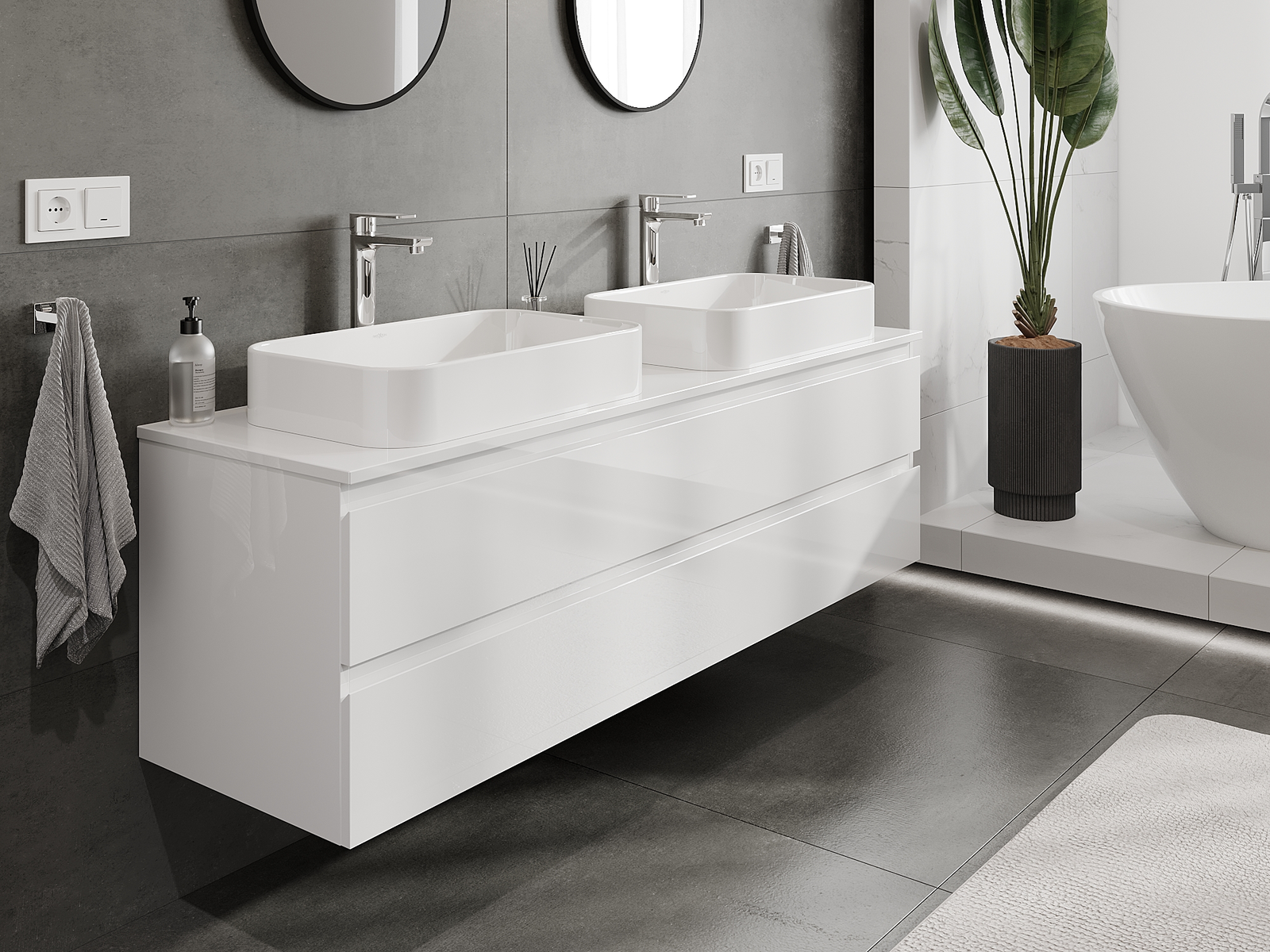 Díky pevným materiálům, preciznímu provedení a moderním technologickým řešením produkt zajišťuje pohodlí při používání, odolnost vůči vlhkosti a změnám teploty a také elegantní vzhled, který se hodí k různým stylům koupelen.