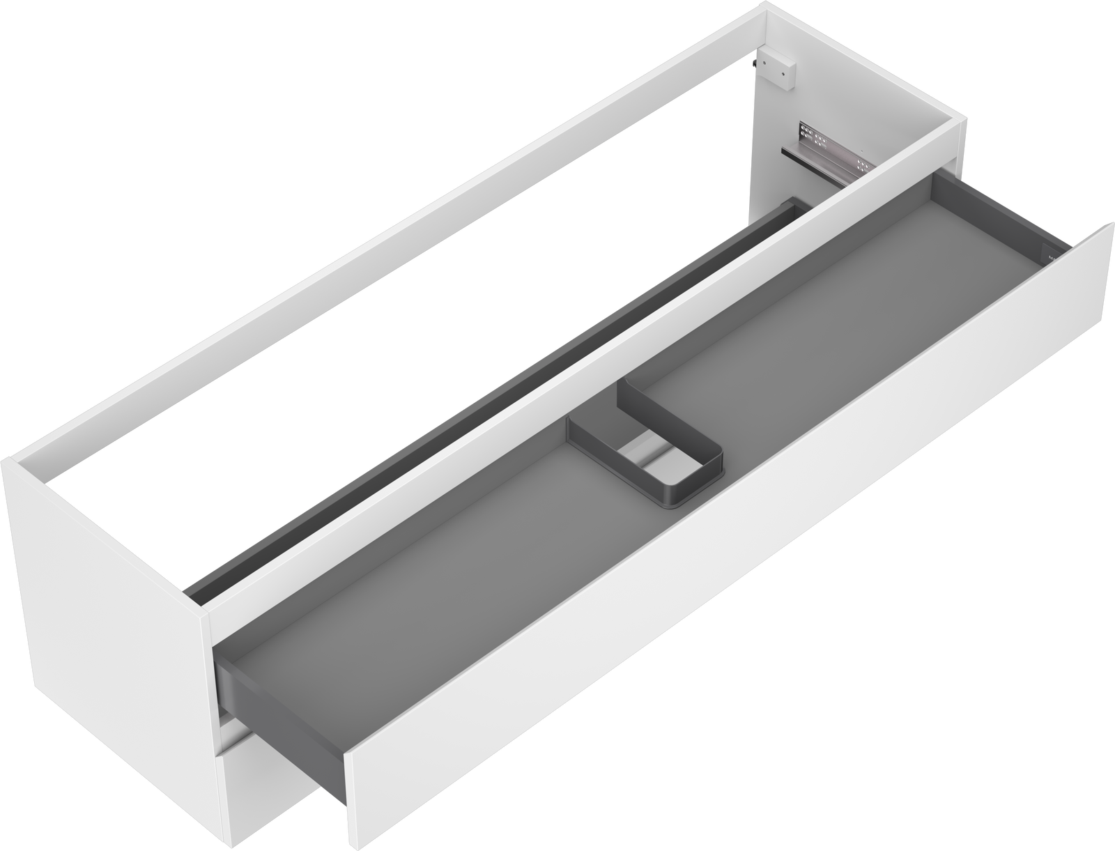 Výřez v zásuvce je navržen tak, aby pojmul sifon, který je nezbytný v instalacích umyvadlových. Díky tomu může být nábytek plně funkčně namontován, aniž by bylo nutné vzdát se prostoru v zásuvce ve prospěch instalace.