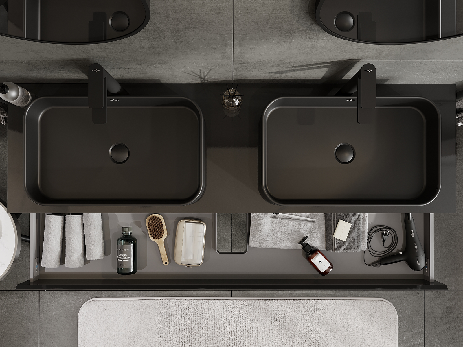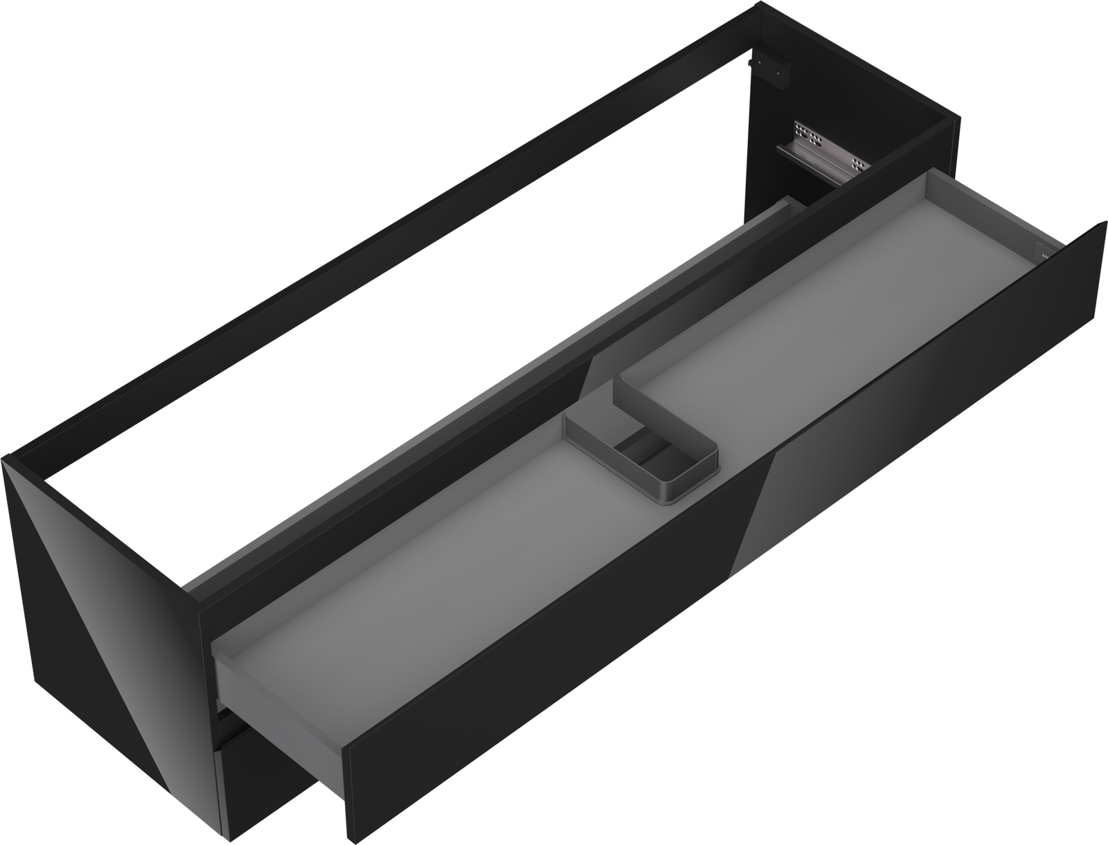Výřez v zásuvce je navržen tak, aby pojmul sifon, který je nezbytný v instalacích umyvadlových. Díky tomu může být nábytek plně funkčně namontován, aniž by bylo nutné vzdát se prostoru v zásuvce ve prospěch instalace.
