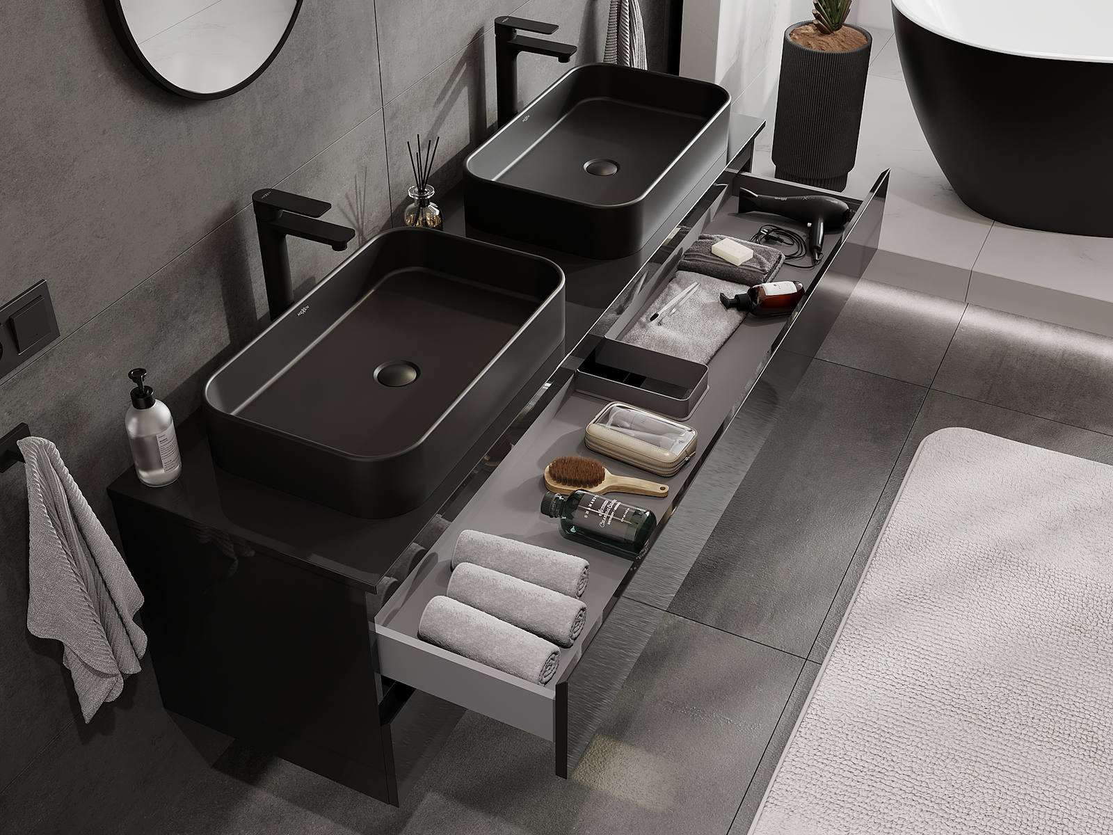 Díky pevným materiálům, preciznímu provedení a moderním technologickým řešením produkt zajišťuje pohodlí při používání, odolnost vůči vlhkosti a změnám teploty a také elegantní vzhled, který se hodí k různým stylům koupelen.