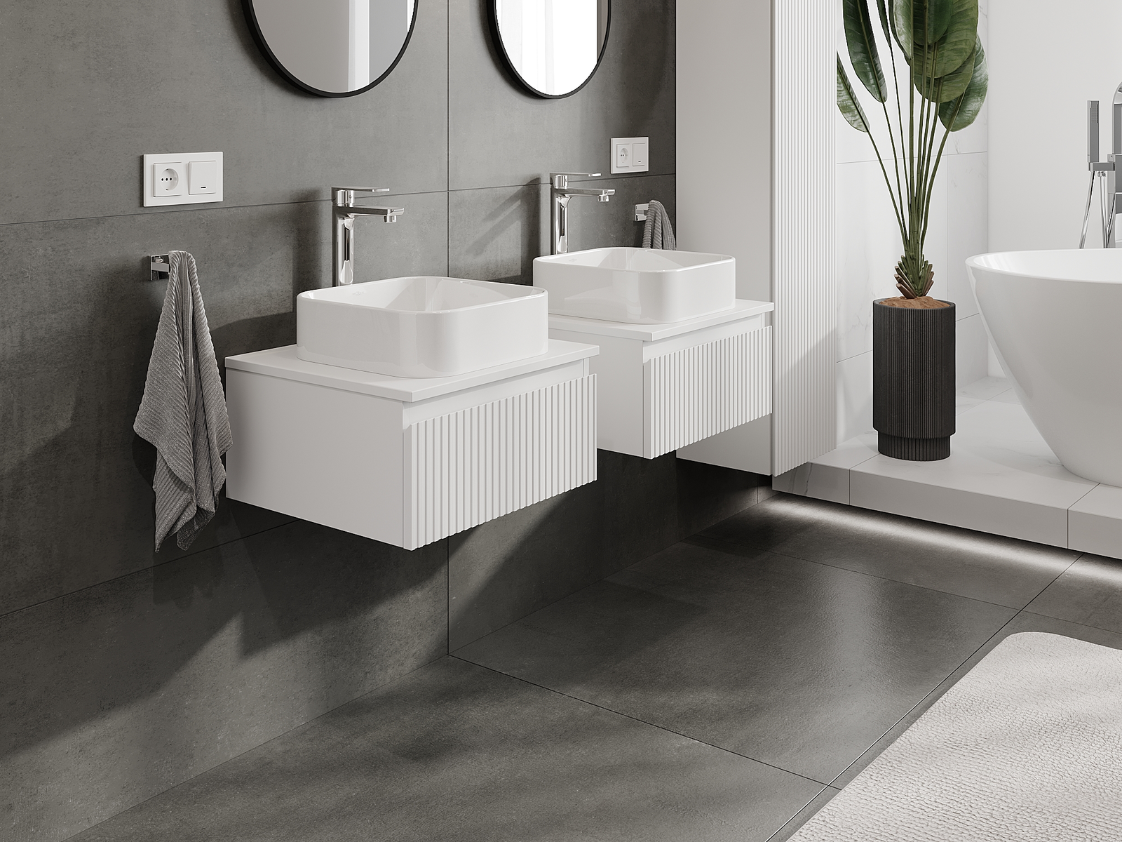 Naše modulární koupelnový nábytek lze kombinovat v různých barevných konfiguracích, což umožňuje plnou personalizaci. Můžete si vybrat jak vzhled, tak funkce jednotlivých prvků, což umožňuje přizpůsobit nábytek vašim stylovým a uživatelským preferencím.