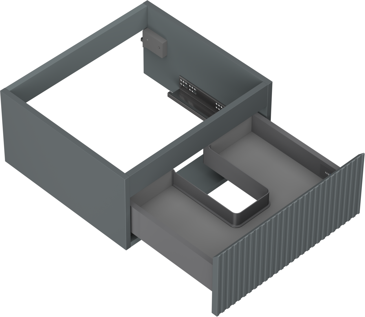 Výřez v zásuvce je navržen tak, aby pojmul sifon, který je nezbytný v instalacích umyvadlových. Díky tomu může být nábytek plně funkčně namontován, aniž by bylo nutné vzdát se prostoru v zásuvce ve prospěch instalace.