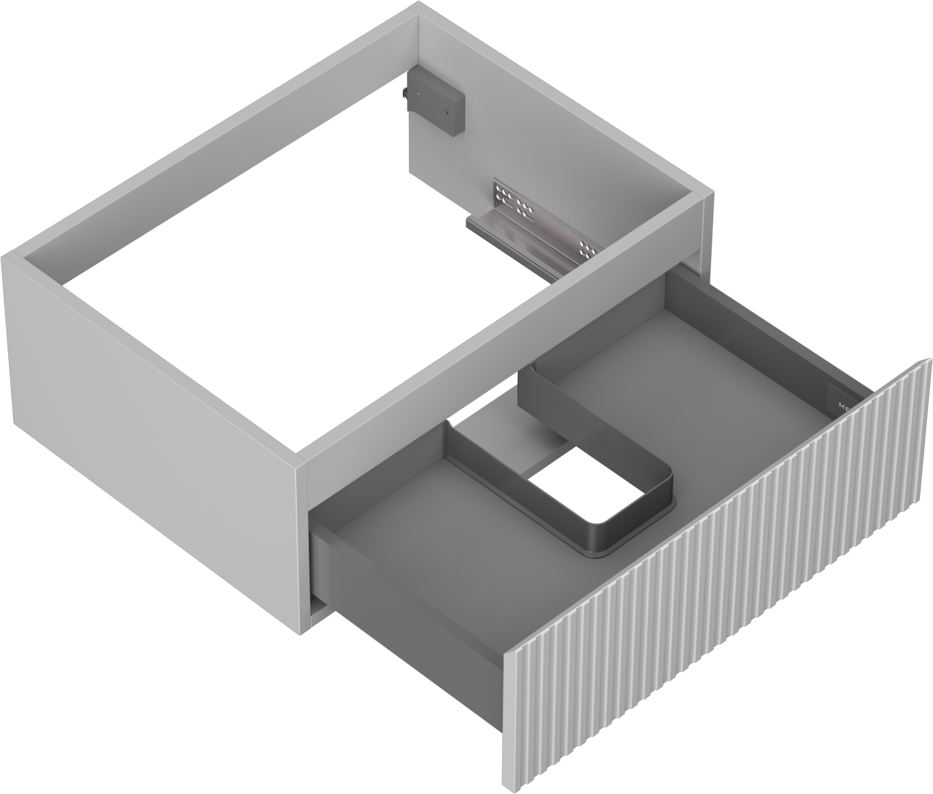Výřez v zásuvce je navržen tak, aby pojmul sifon, který je nezbytný v instalacích umyvadlových. Díky tomu může být nábytek plně funkčně namontován, aniž by bylo nutné vzdát se prostoru v zásuvce ve prospěch instalace.