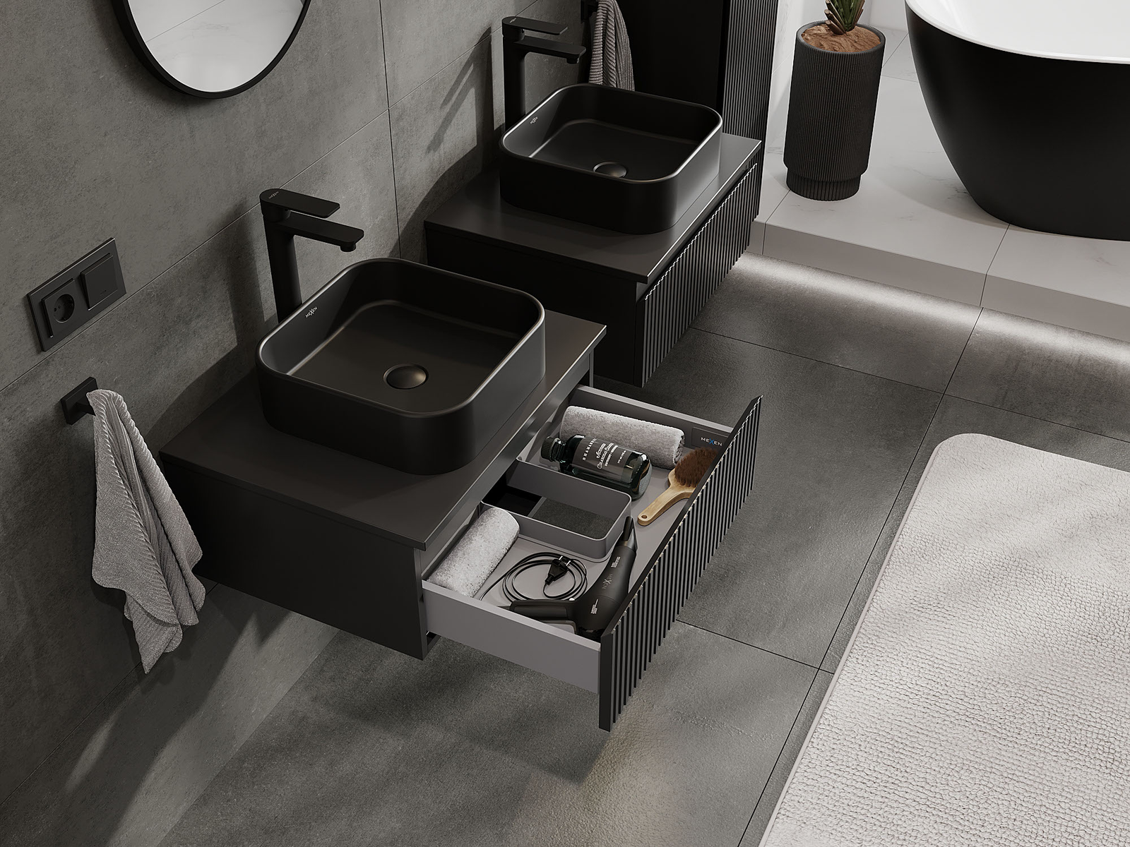 Mexen Rivel koupelnová skříňka pod umyvadlo 60 cm, 1 zásuvka, drážkovaná, černá mat - 91A20-06023-1-BF71