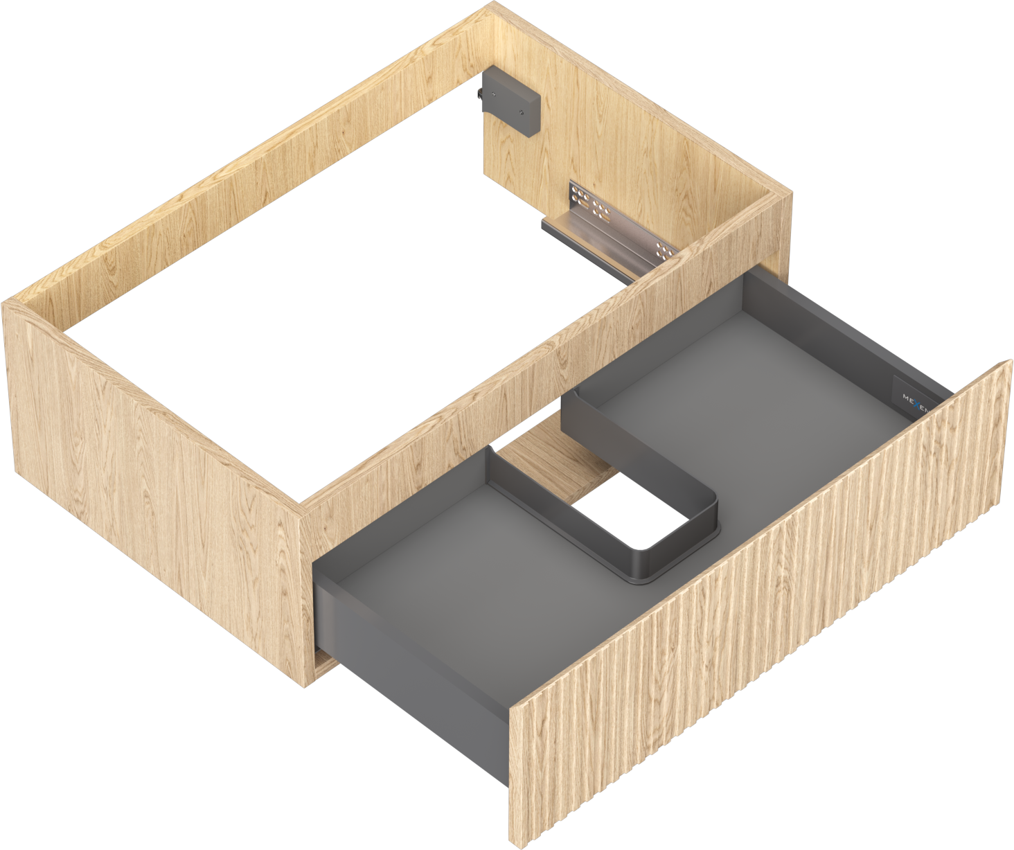 Výřez v zásuvce je navržen tak, aby pojmul sifon, který je nezbytný v instalacích umyvadlových. Díky tomu může být nábytek plně funkčně namontován, aniž by bylo nutné vzdát se prostoru v zásuvce ve prospěch instalace.