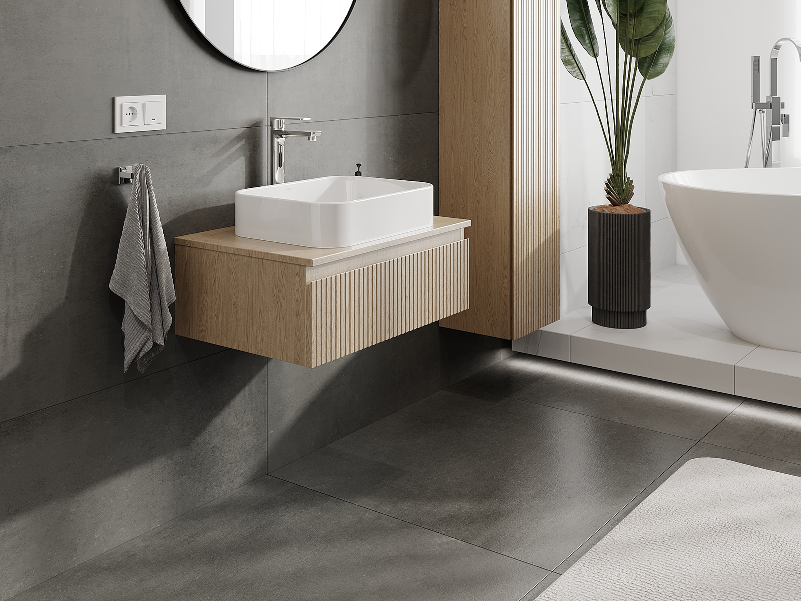 Naše modulární koupelnový nábytek lze kombinovat v různých barevných konfiguracích, což umožňuje plnou personalizaci. Můžete si vybrat jak vzhled, tak funkce jednotlivých prvků, což umožňuje přizpůsobit nábytek vašim stylovým a uživatelským preferencím.