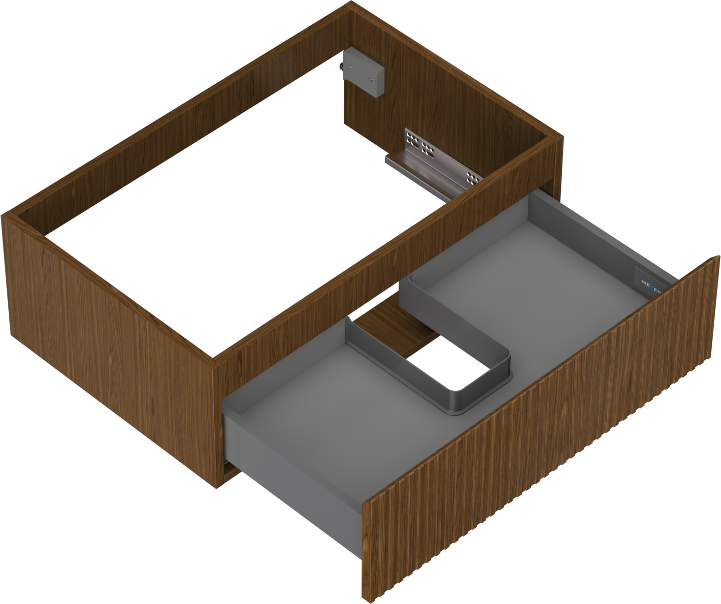 Výřez v zásuvce je navržen tak, aby pojmul sifon, který je nezbytný v instalacích umyvadlových. Díky tomu může být nábytek plně funkčně namontován, aniž by bylo nutné vzdát se prostoru v zásuvce ve prospěch instalace.