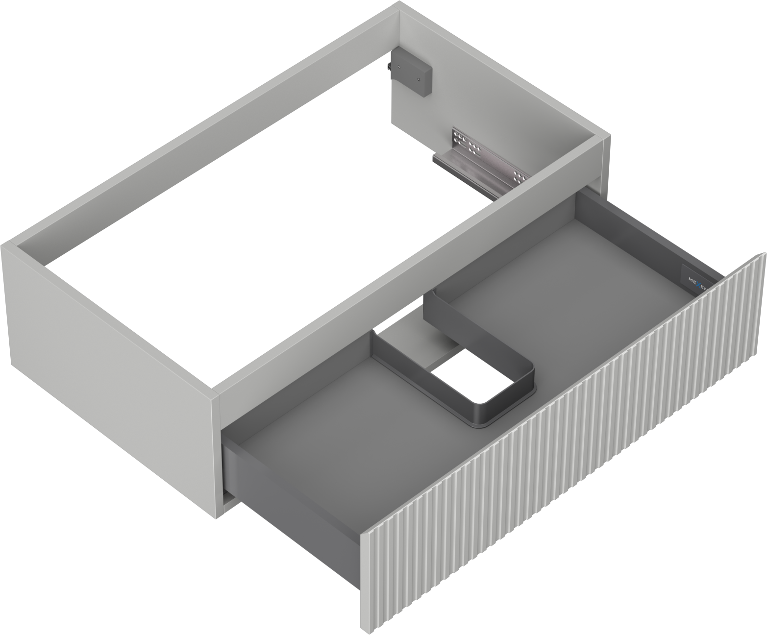 Výřez v zásuvce je navržen tak, aby pojmul sifon, který je nezbytný v instalacích umyvadlových. Díky tomu může být nábytek plně funkčně namontován, aniž by bylo nutné vzdát se prostoru v zásuvce ve prospěch instalace.