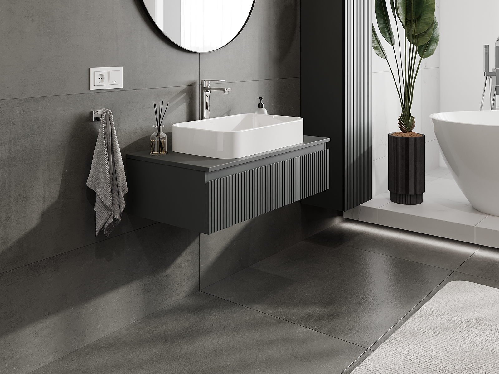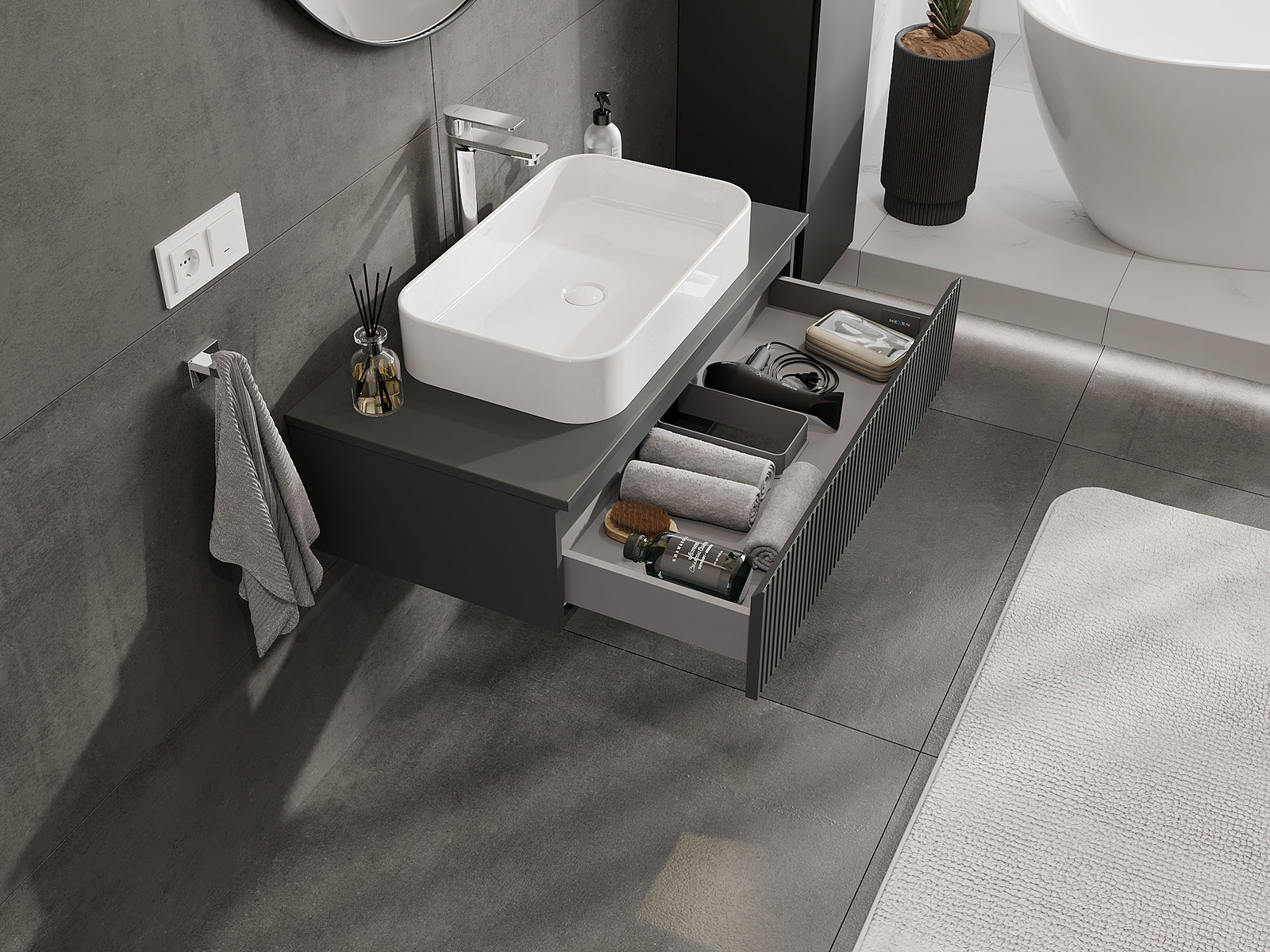 Mexen Rivel koupelnová skříňka pod umyvadlo 90 cm, 1 zásuvka, drážkovaná, grafit mat - 91A20-09023-1-BF66