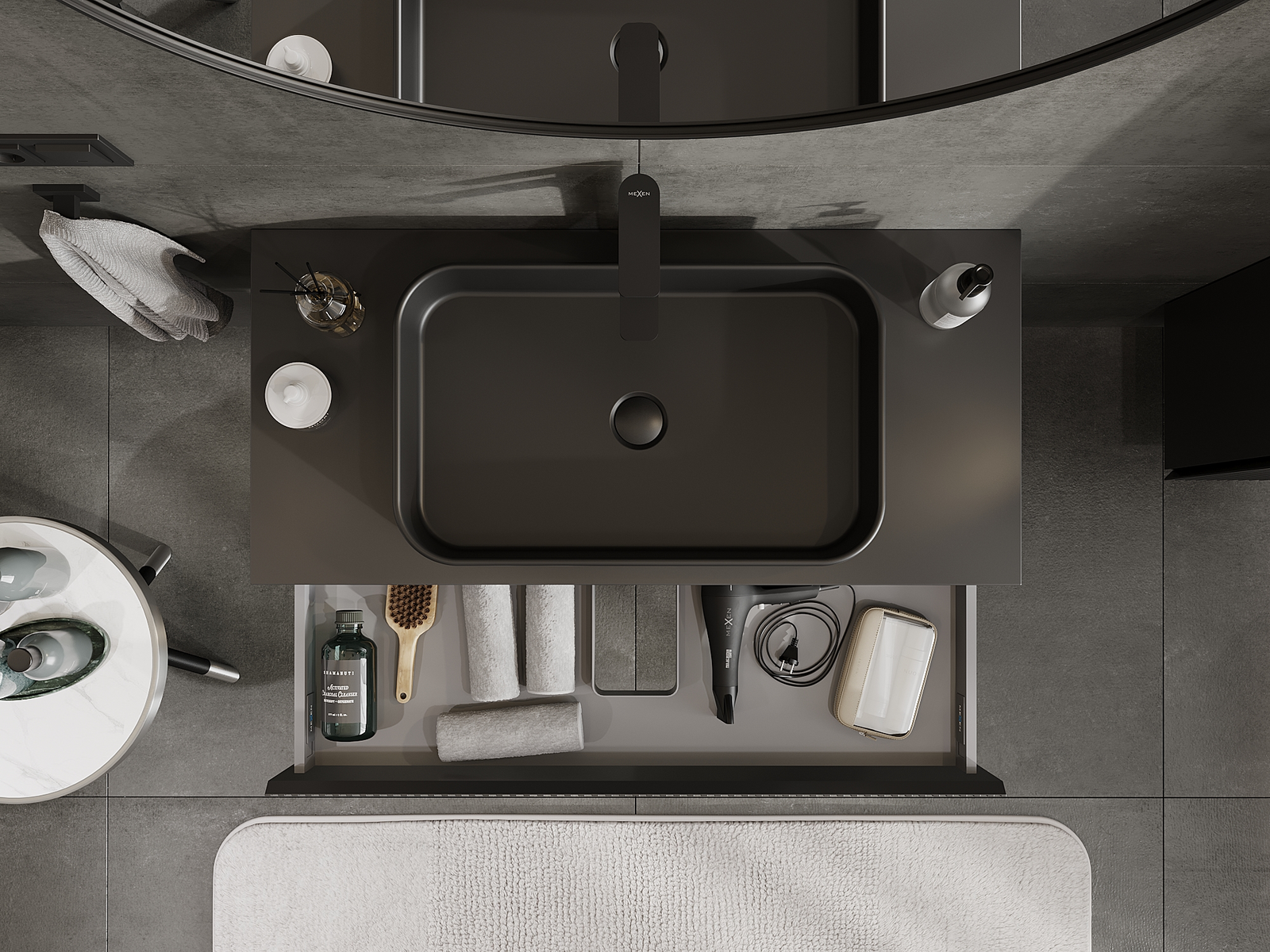 Mexen Rivel koupelnová skříňka pod umyvadlo 100 cm, 1 zásuvka, drážkovaná, černá matná - 91A20-10023-1-BF71