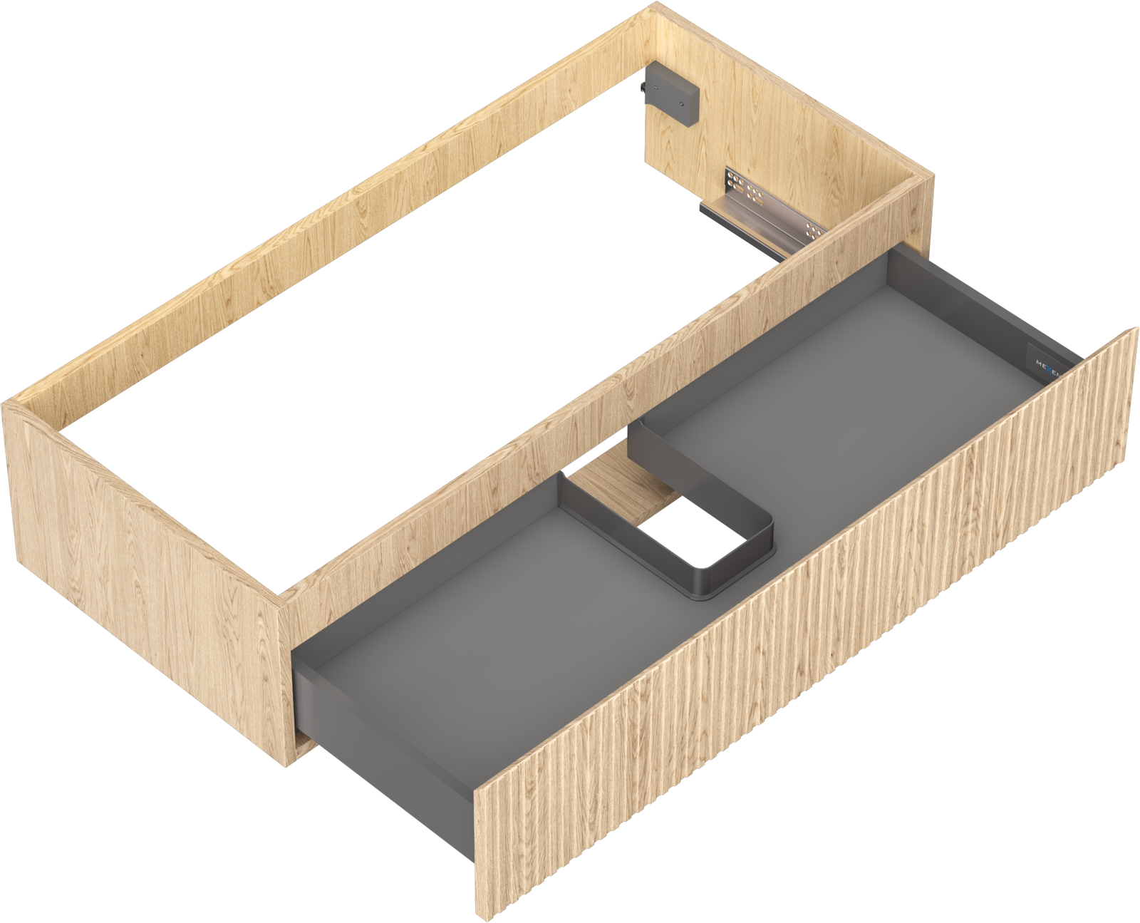Výřez v zásuvce je navržen tak, aby pojmul sifon, který je nezbytný v instalacích umyvadlových. Díky tomu může být nábytek plně funkčně namontován, aniž by bylo nutné vzdát se prostoru v zásuvce ve prospěch instalace.