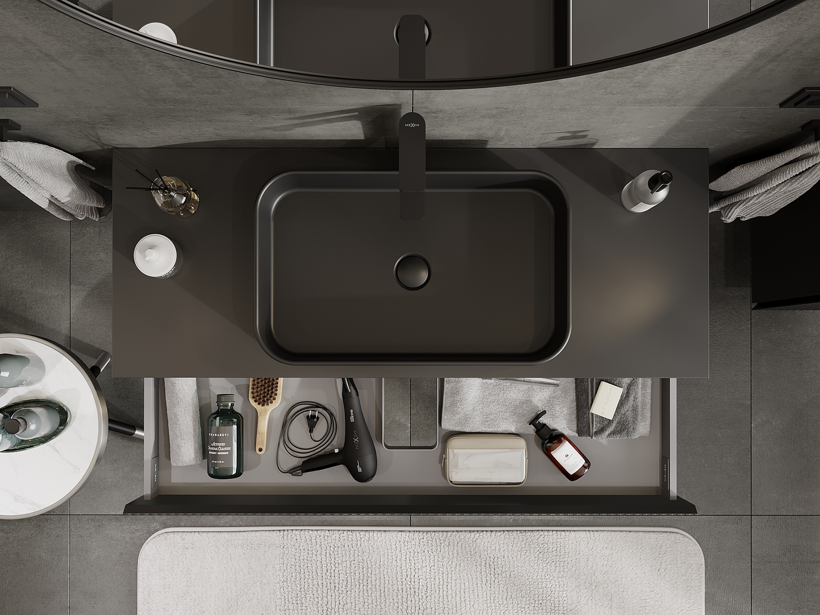 Mexen Rivel koupelnová skříňka pod umyvadlo 120 cm, 1 zásuvka, drážkovaná, černá mat - 91A20-12023-1-BF71