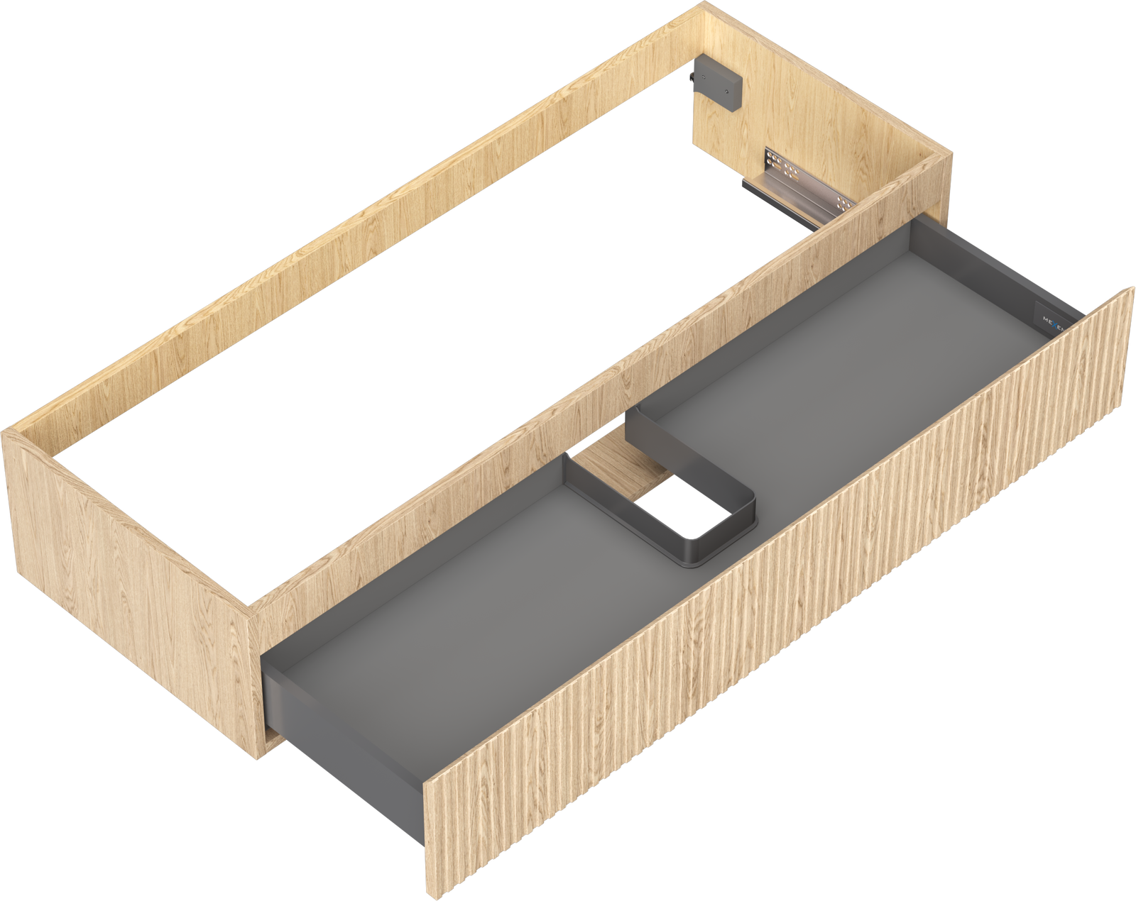 Výřez v zásuvce je navržen tak, aby pojmul sifon, který je nezbytný v instalacích umyvadlových. Díky tomu může být nábytek plně funkčně namontován, aniž by bylo nutné vzdát se prostoru v zásuvce ve prospěch instalace.
