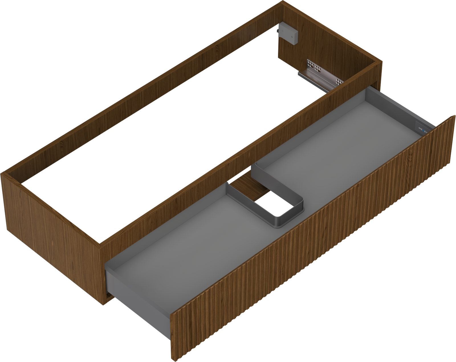 Výřez v zásuvce je navržen tak, aby pojmul sifon, který je nezbytný v instalacích umyvadlových. Díky tomu může být nábytek plně funkčně namontován, aniž by bylo nutné vzdát se prostoru v zásuvce ve prospěch instalace.