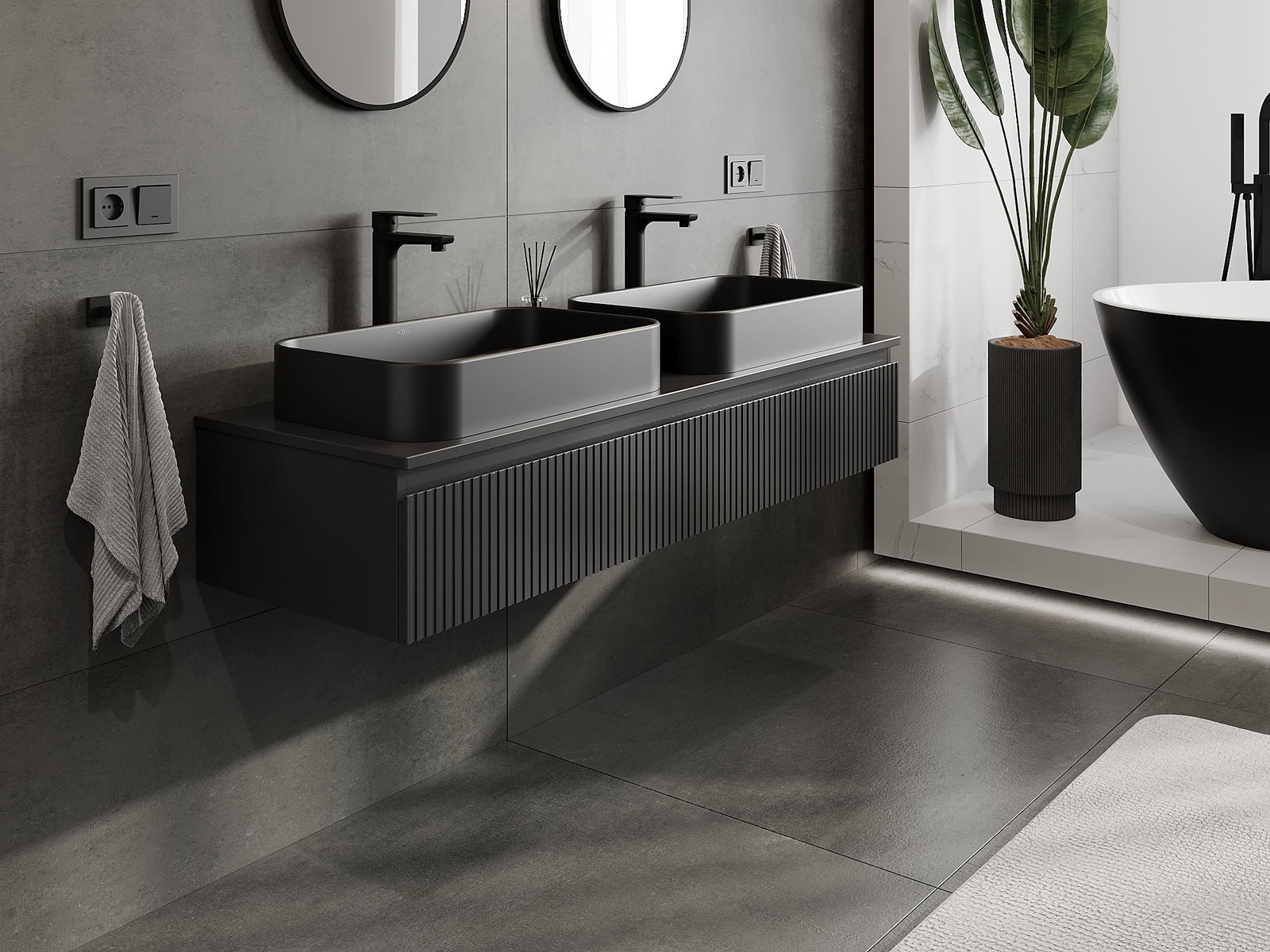 Mexen Rivel koupelnová skříňka pod umyvadlo 140 cm, 1 zásuvka, drážkovaná, černá mat - 91A20-14023-1-BF71
