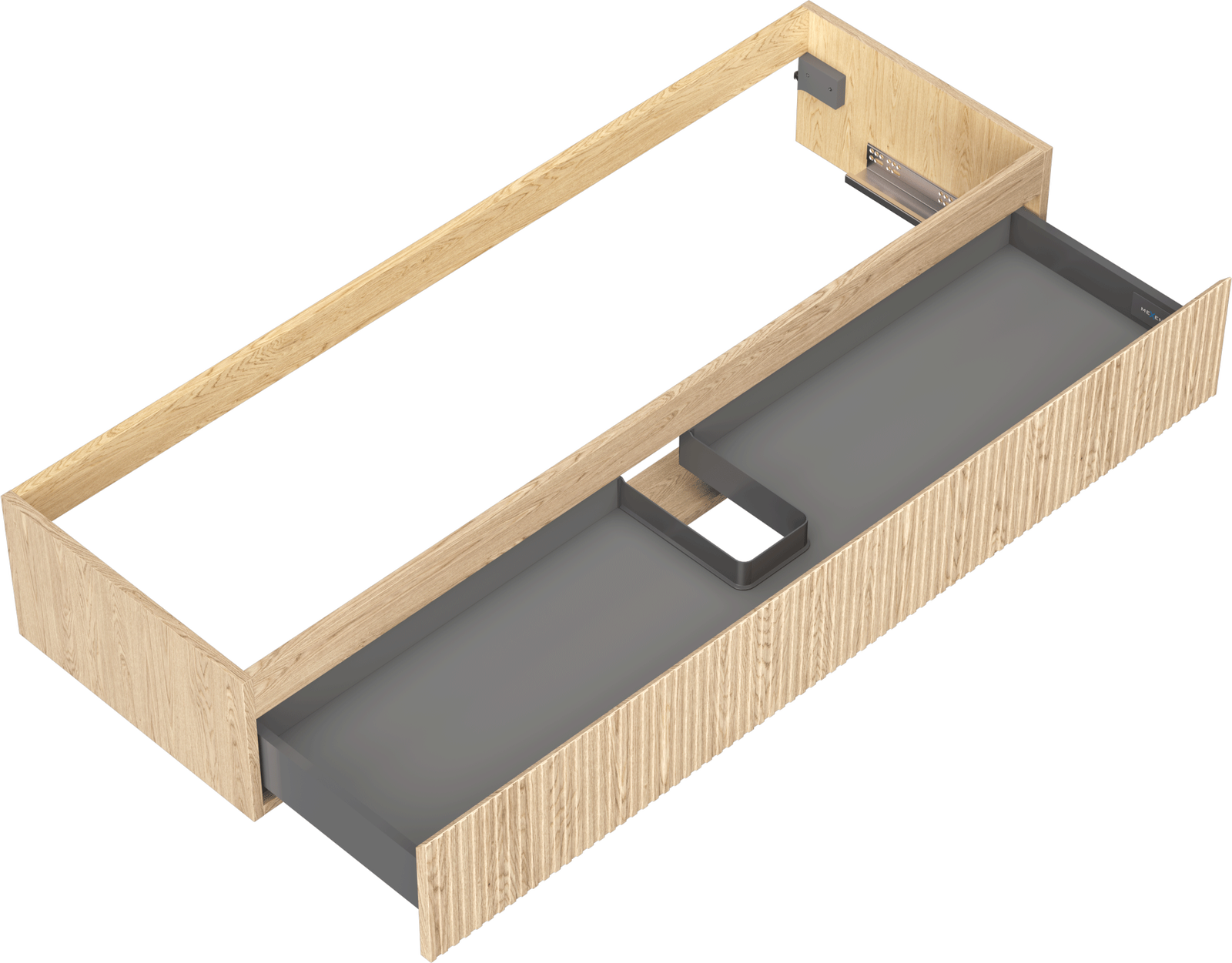 Výřez v zásuvce je navržen tak, aby pojmul sifon, který je nezbytný v instalacích umyvadlových. Díky tomu může být nábytek plně funkčně namontován, aniž by bylo nutné vzdát se prostoru v zásuvce ve prospěch instalace.