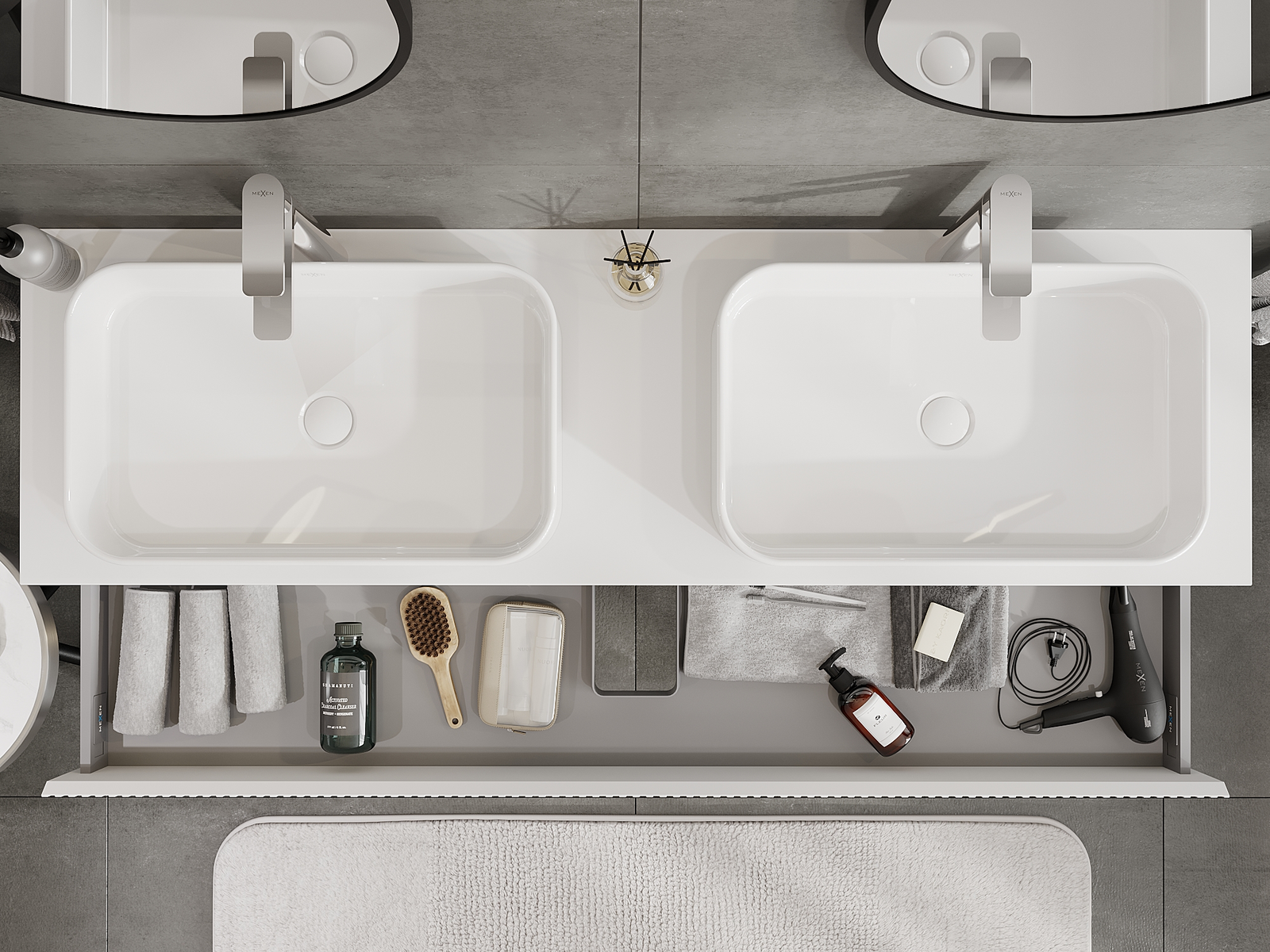 Výřez v zásuvce je navržen tak, aby pojmul sifon, který je nezbytný v instalacích umyvadlových. Díky tomu může být nábytek plně funkčně namontován, aniž by bylo nutné vzdát se prostoru v zásuvce ve prospěch instalace.
