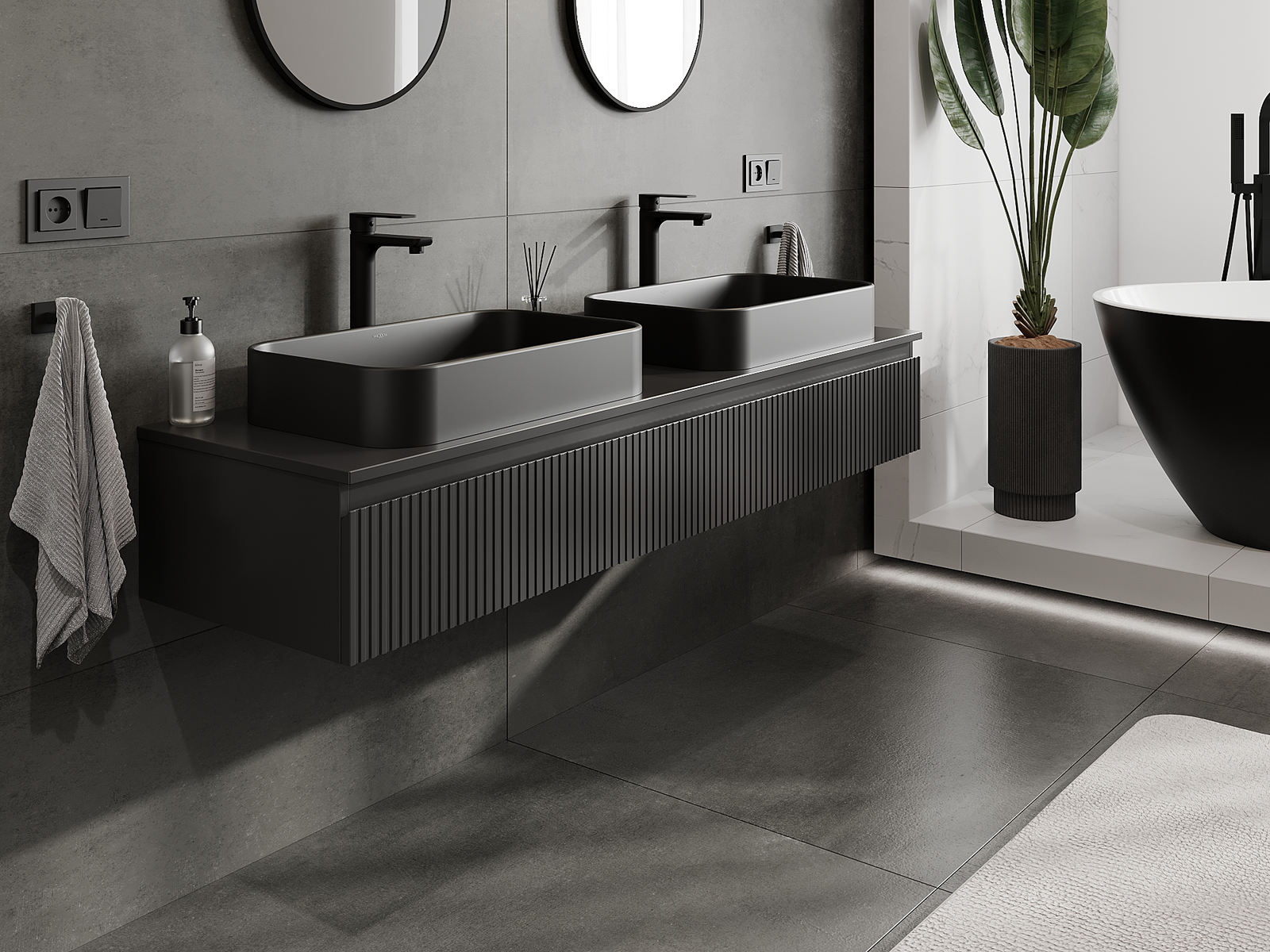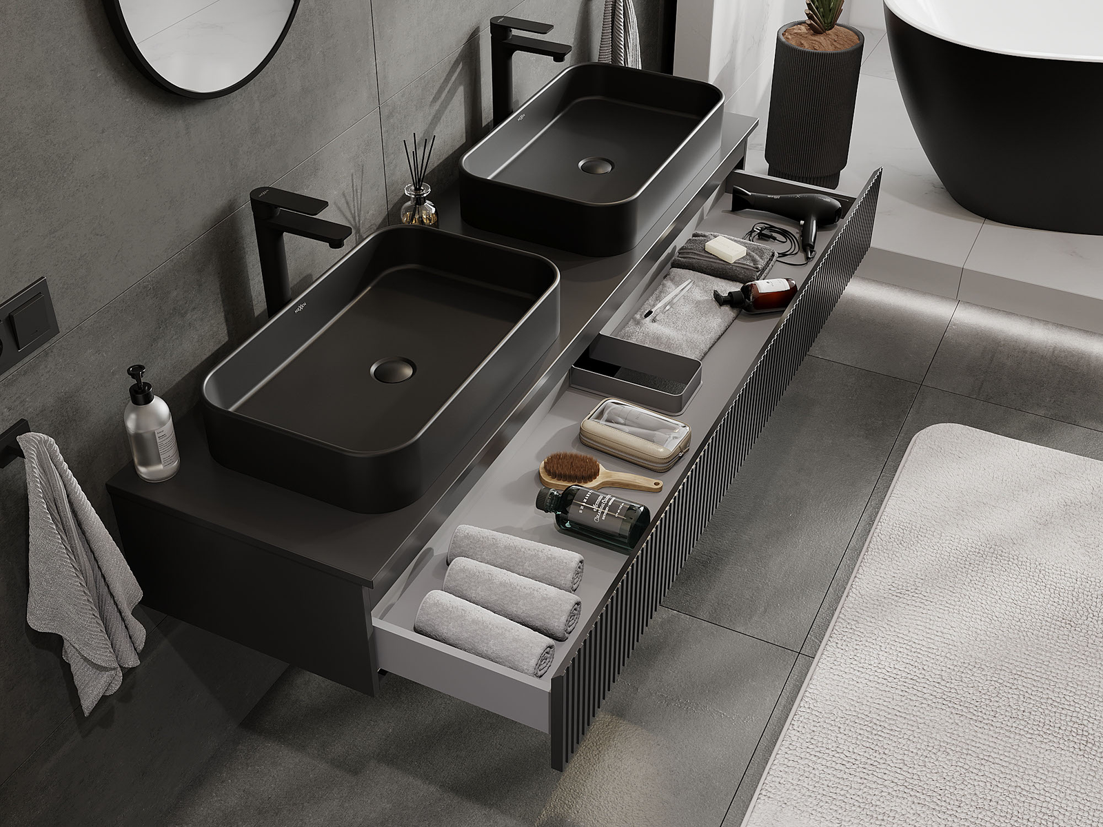 Mexen Rivel koupelnová skříňka pod umyvadlo 160 cm, 1 zásuvka, rýhovaná, černá matná - 91A20-16023-1-BF71