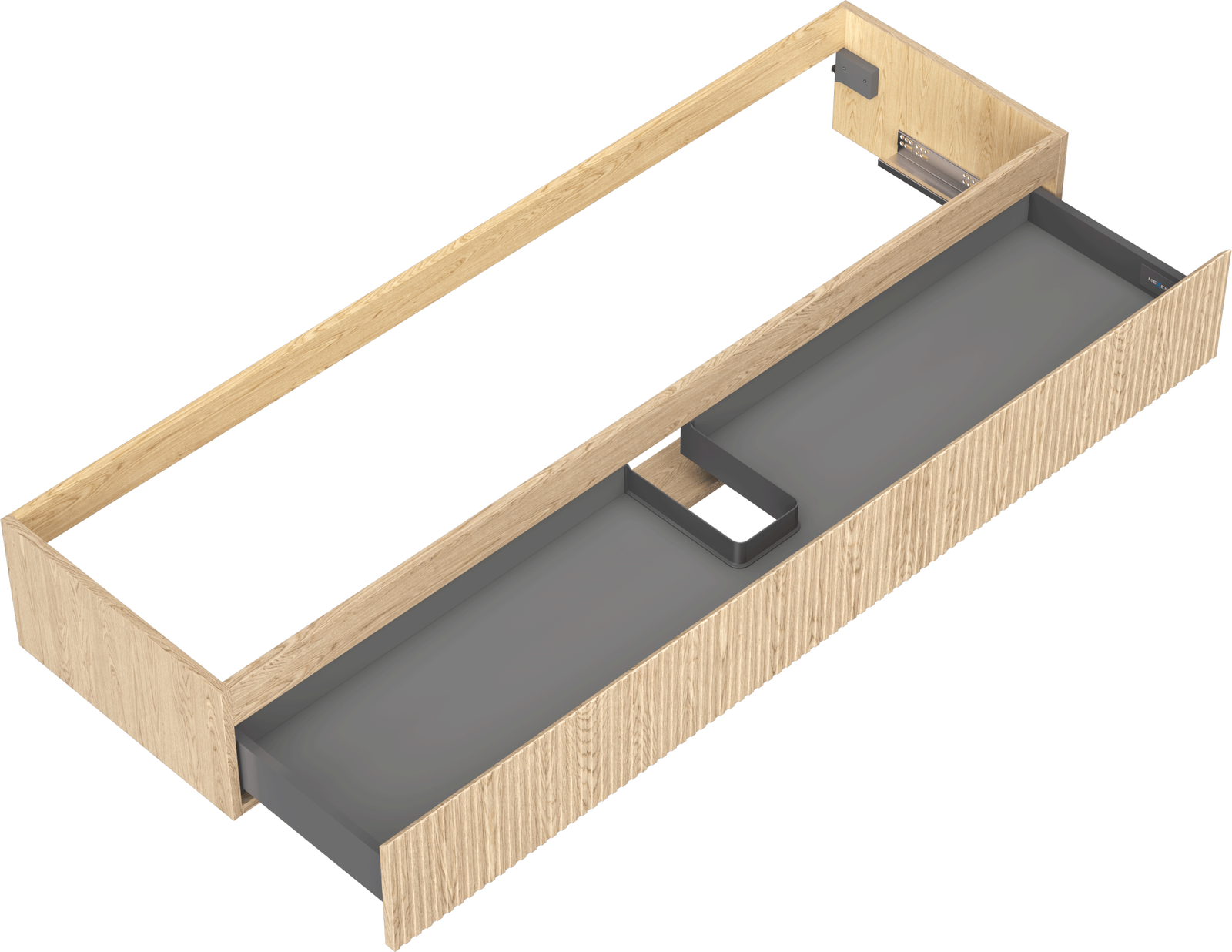 Výřez v zásuvce je navržen tak, aby pojmul sifon, který je nezbytný v instalacích umyvadlových. Díky tomu může být nábytek plně funkčně namontován, aniž by bylo nutné vzdát se prostoru v zásuvce ve prospěch instalace.