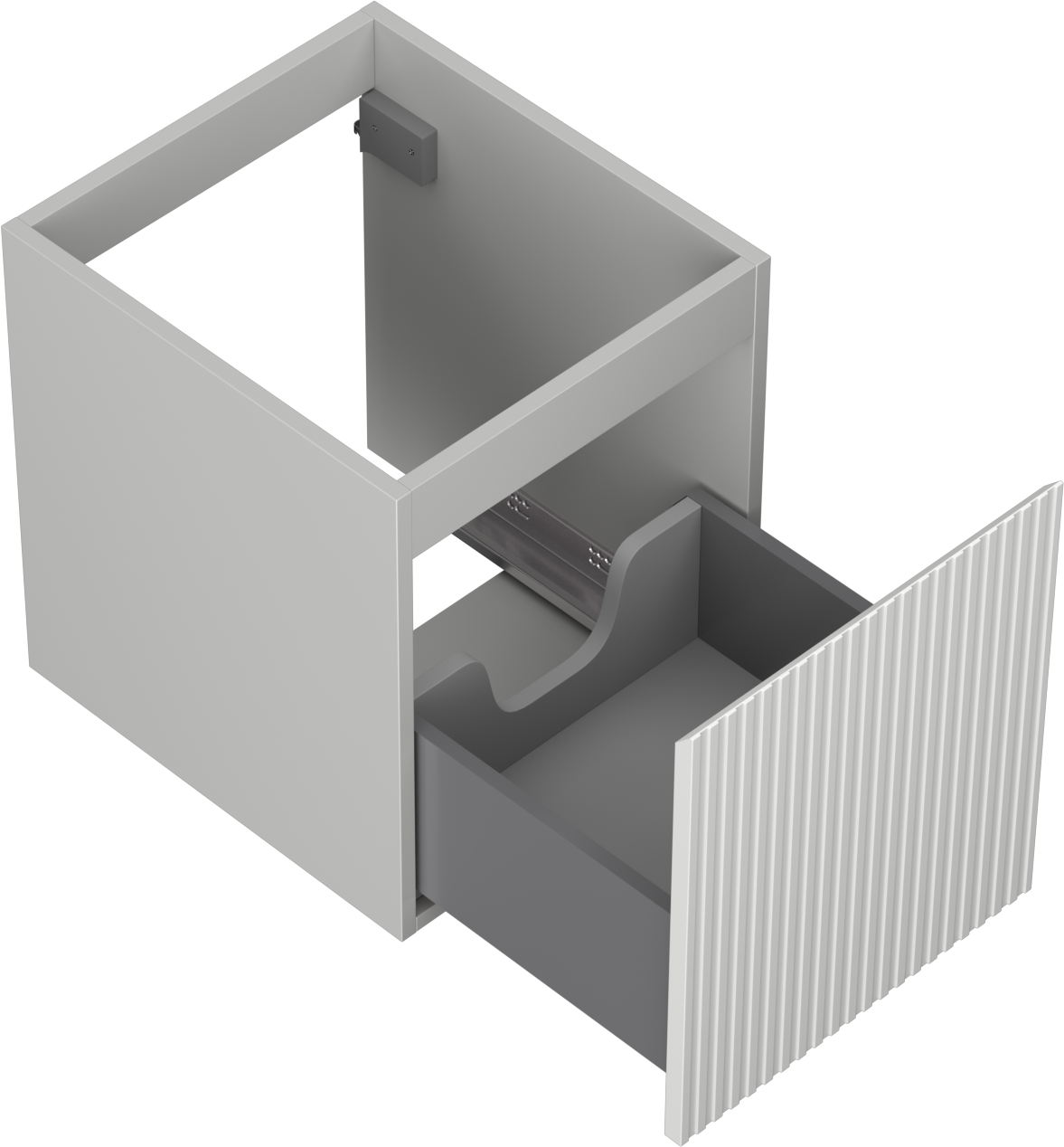 Výřez v zásuvce je navržen tak, aby pojmul sifon, který je nezbytný v instalacích umyvadlových. Díky tomu může být nábytek plně funkčně namontován, aniž by bylo nutné vzdát se prostoru v zásuvce ve prospěch instalace.