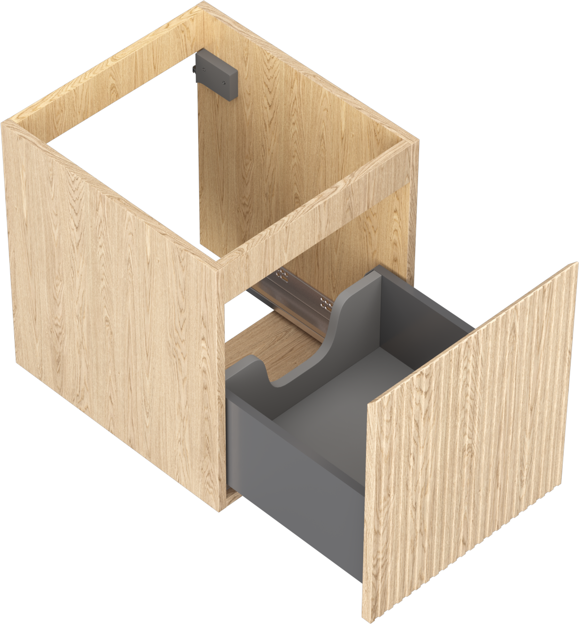 Výřez v zásuvce je navržen tak, aby pojmul sifon, který je nezbytný v instalacích umyvadlových. Díky tomu může být nábytek plně funkčně namontován, aniž by bylo nutné vzdát se prostoru v zásuvce ve prospěch instalace.