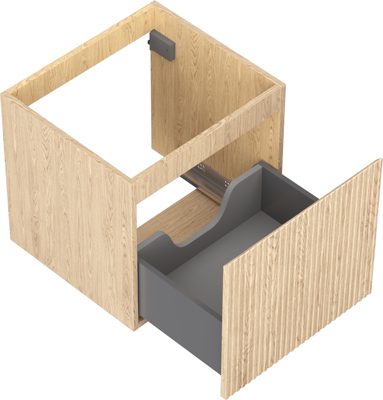 Výřez v zásuvce je navržen tak, aby pojmul sifon, který je nezbytný v instalacích umyvadlových. Díky tomu může být nábytek plně funkčně namontován, aniž by bylo nutné vzdát se prostoru v zásuvce ve prospěch instalace.