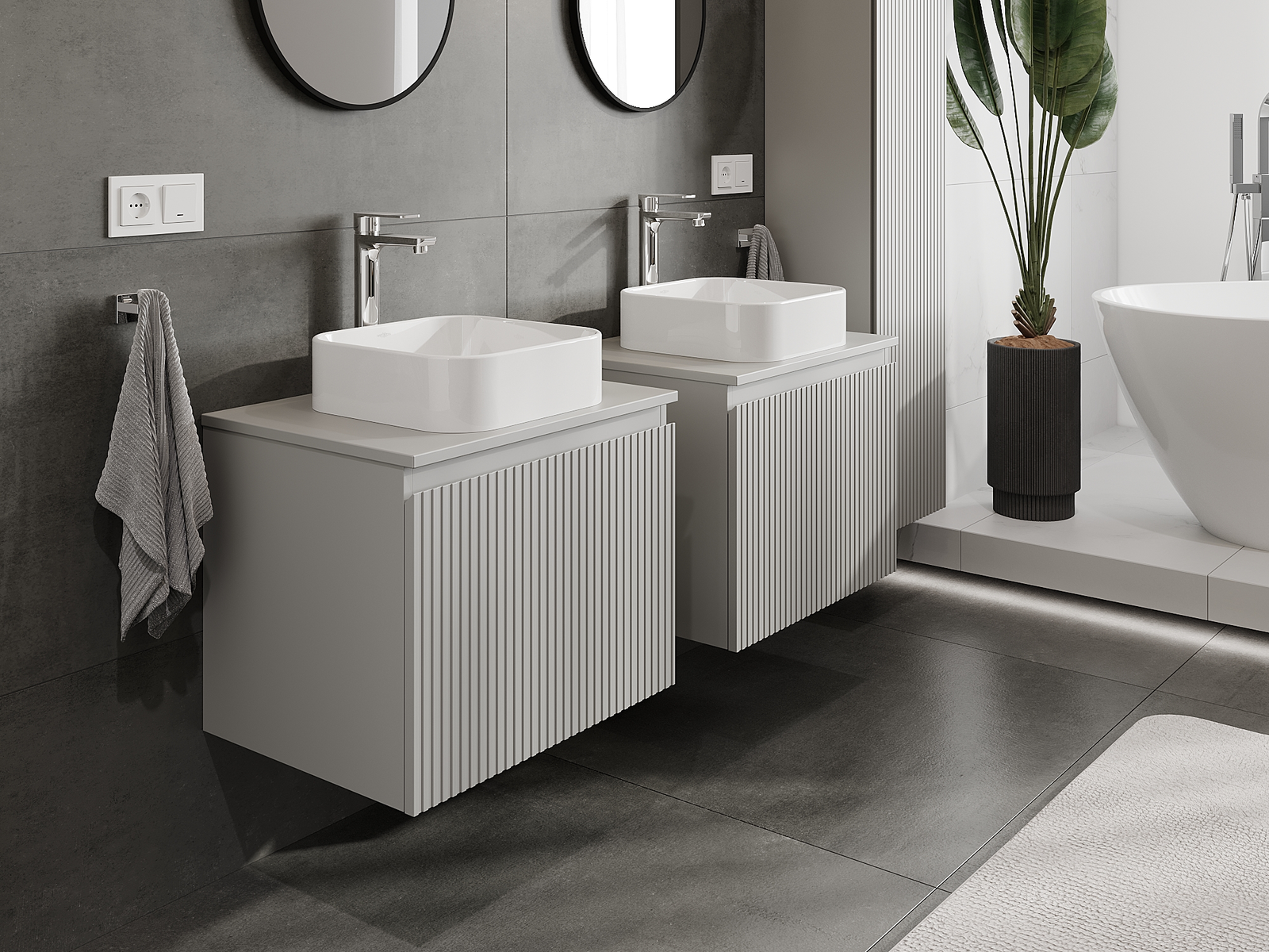 Naše modulární koupelnový nábytek lze kombinovat v různých barevných konfiguracích, což umožňuje plnou personalizaci. Můžete si vybrat jak vzhled, tak funkce jednotlivých prvků, což umožňuje přizpůsobit nábytek vašim stylovým a uživatelským preferencím.