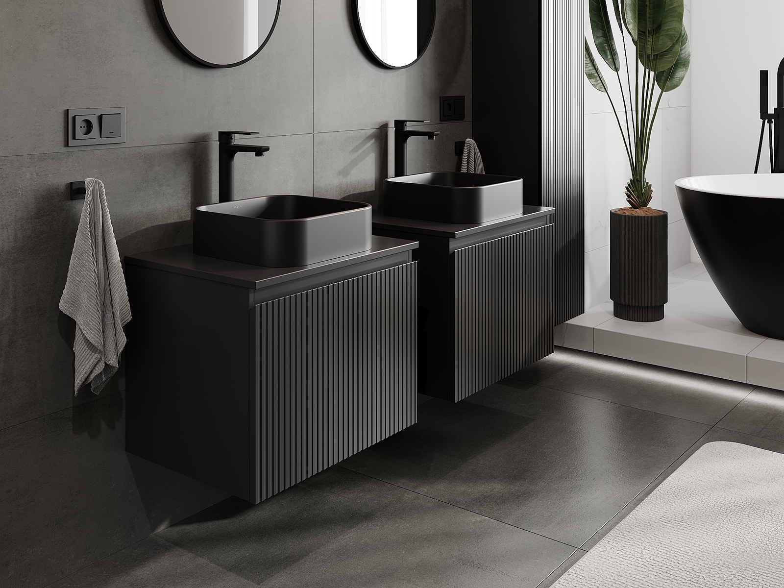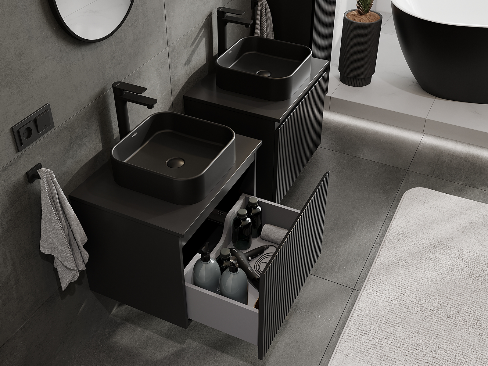 Mexen Rivel koupelnová skříňka pod umyvadlo 60 cm, 1 zásuvka, drážkovaná, černý mat - 91A20-06047-1-BF71