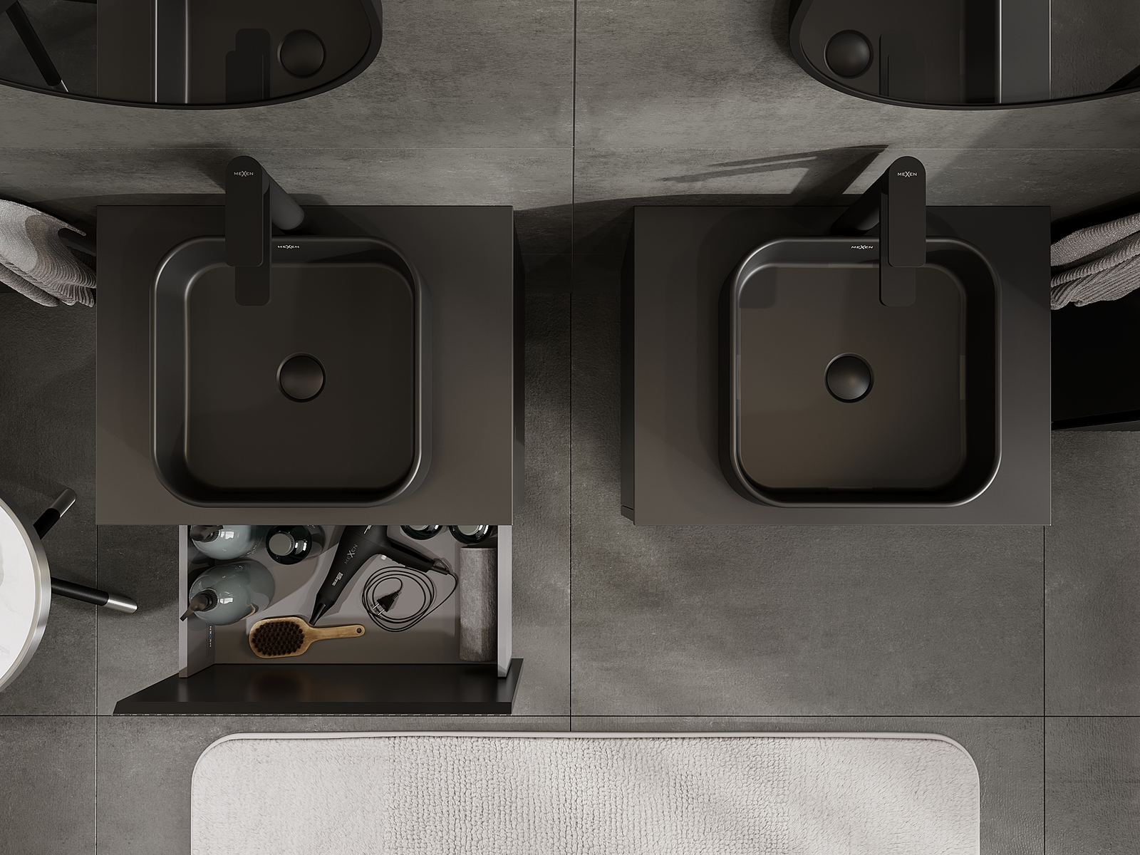 Naše modulární koupelnový nábytek lze kombinovat v různých barevných konfiguracích, což umožňuje plnou personalizaci. Můžete si vybrat jak vzhled, tak funkce jednotlivých prvků, což umožňuje přizpůsobit nábytek vašim stylovým a uživatelským preferencím.